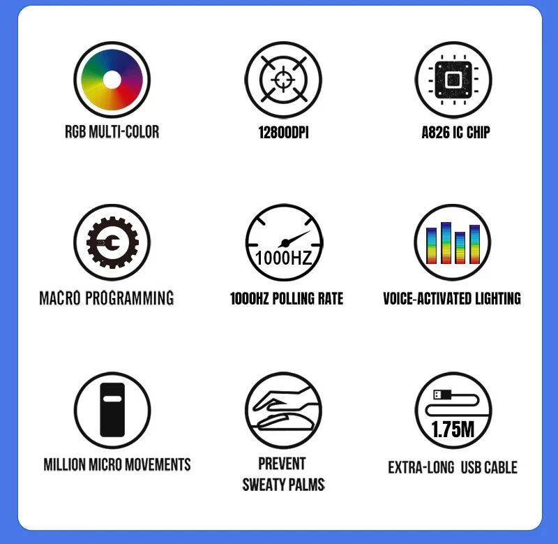 This gaming mouse is a beast! The 12800 DPI sensor is ultra-responsive, and the ergonomic design keeps my hand comfy during long sessions. The RGB lighting looks sick, and the macro-programmable buttons give me a competitive edge. Perfect for FPS and MOBA games—highly recommend!