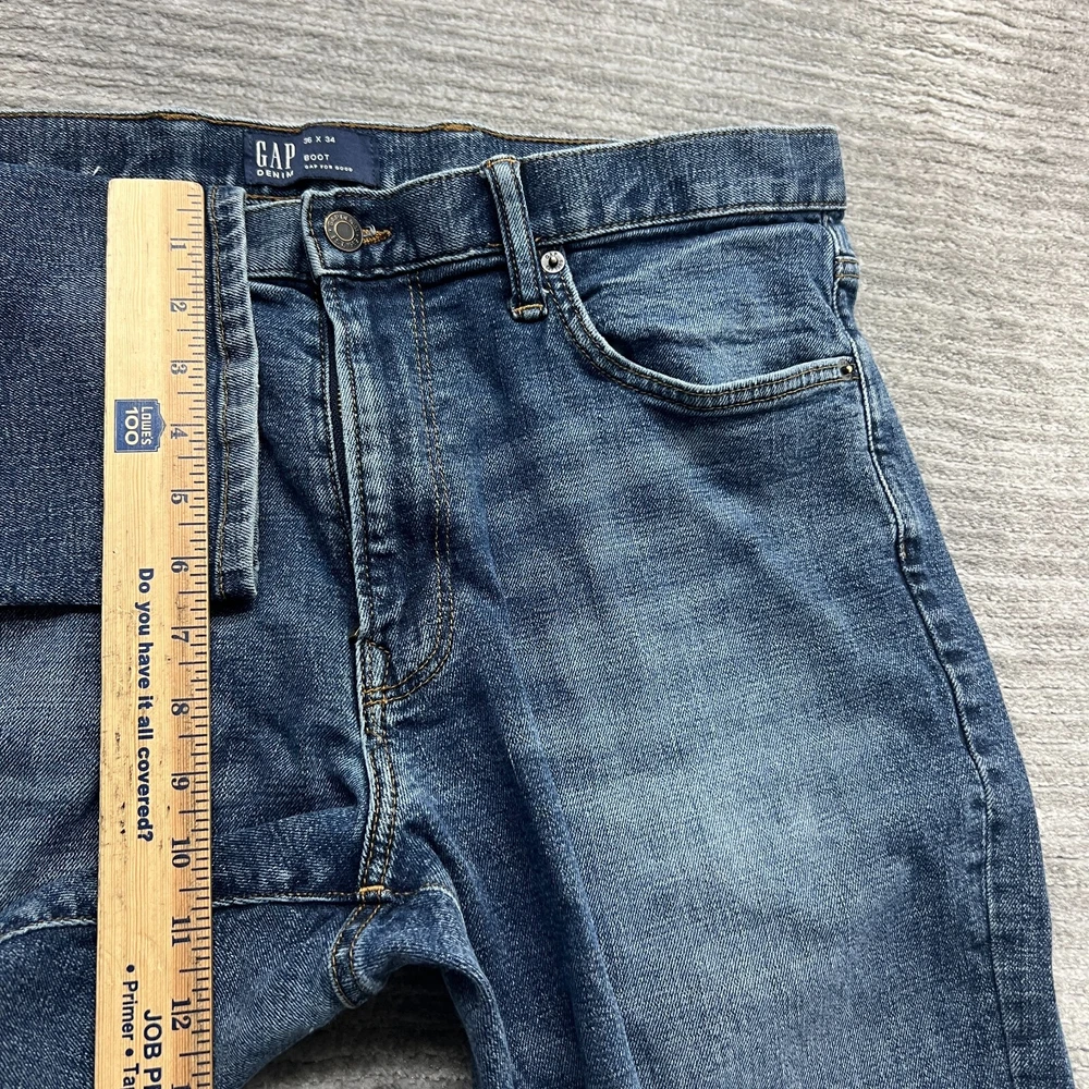 GAP Jeans Size 36x34 Mens Slim Medium Wash Blue Denim Please View Photos Closely. Please note, item measurements are approximate and in the photos. Items are carefully inspected and sealed after photos, so we cannot check additional measurements or details for you. All clothing has been cleaned/washed per eBay standards. We store our items in a pet and smoke free environment. We ship daily, and have 30 day returns. Thank you!