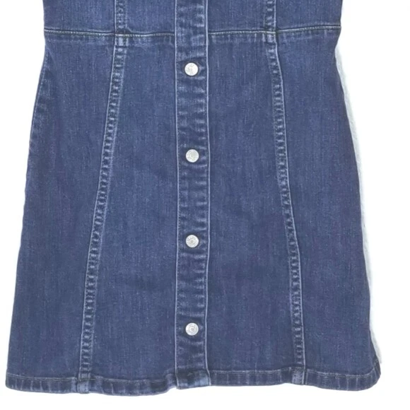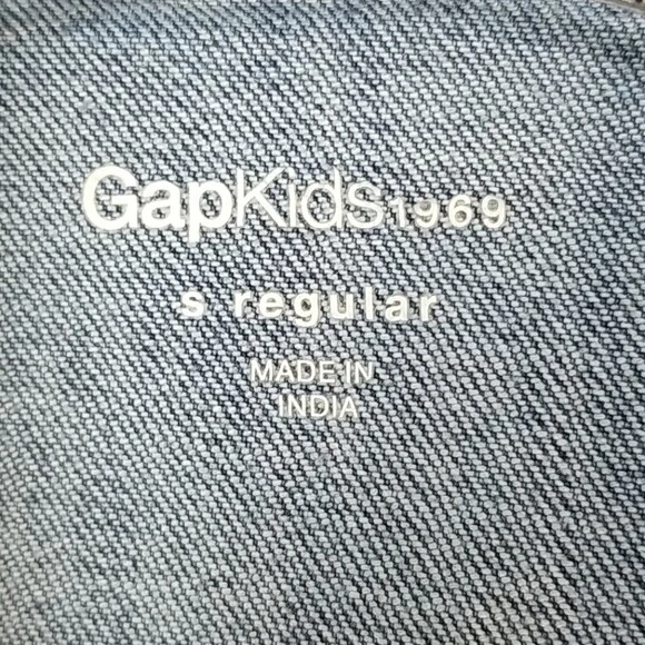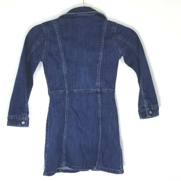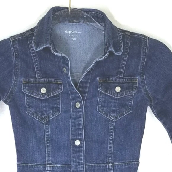 GAP KIDS Snap-Up Denim Dress, size S. Snap button closures. 2 front pockets. Gently pre-owned. Appr. Measurements: pit-to-pit-- 13 in sleeves-- 17 in shoulder to hem-- 24 in (#D--18-0503)