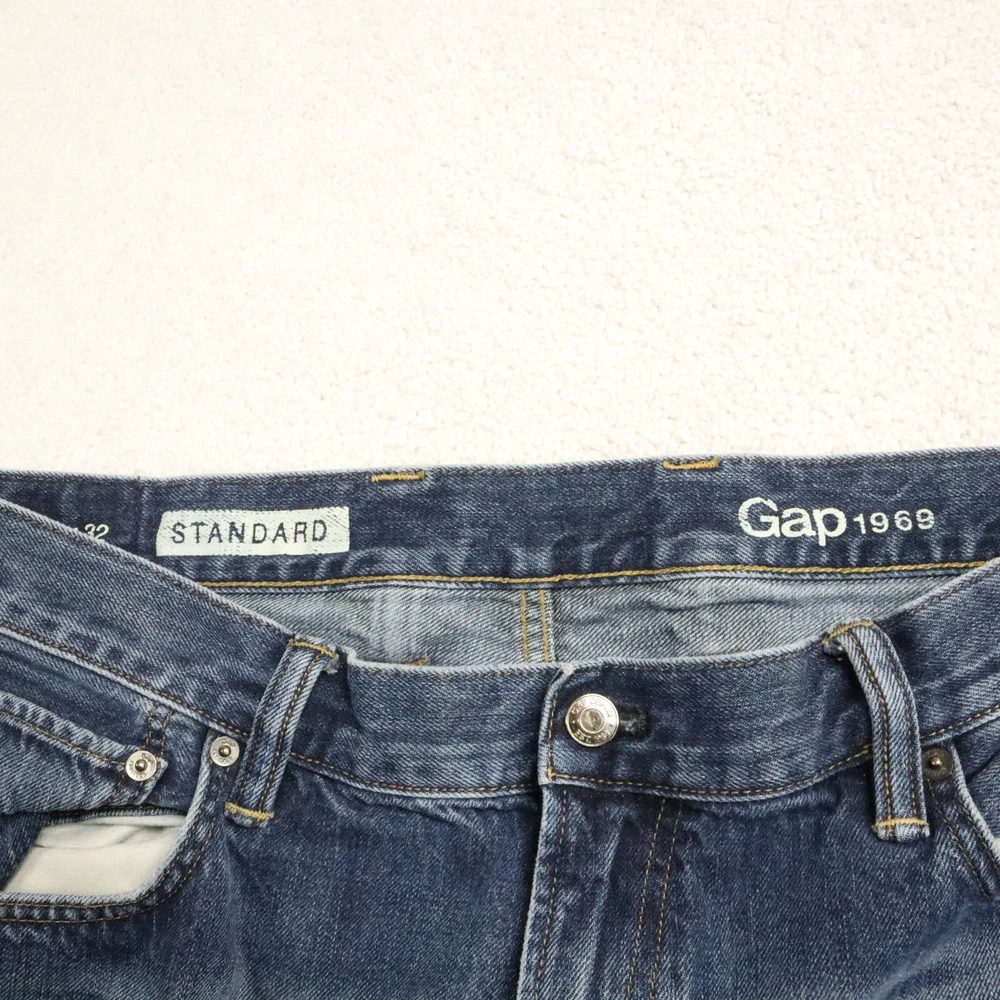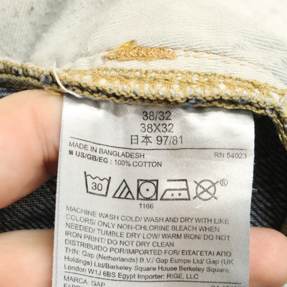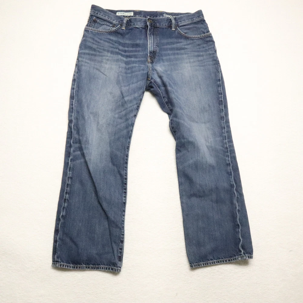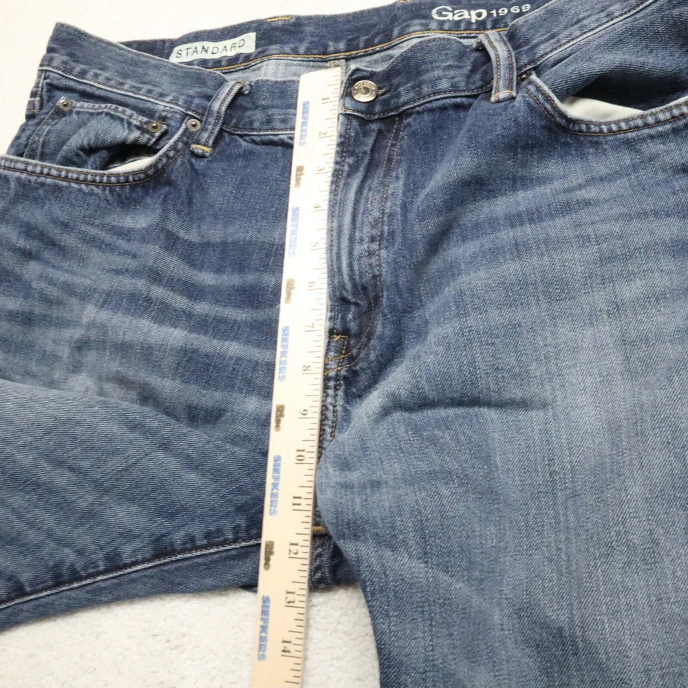 Color: Blue Country/Region of Manufacture: Unknown Accents: None Inseam: 32 in Size Type: Regular Pattern: Solid Leg Opening: See Picture #5 Type: Jeans Waist Size: See Picture #6 Product Line: Unknown Closure: See Picture #7 Features: Comfort, Pockets Vintage: No Department: Men Material: Cotton, See Picture #11 Theme: None Model: None Rise: See Picture #8 Fabric Wash: Medium Fabric Type: Denim Fit: Regular Size: 38 Style: Ankle Brand: Gap