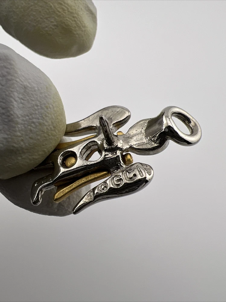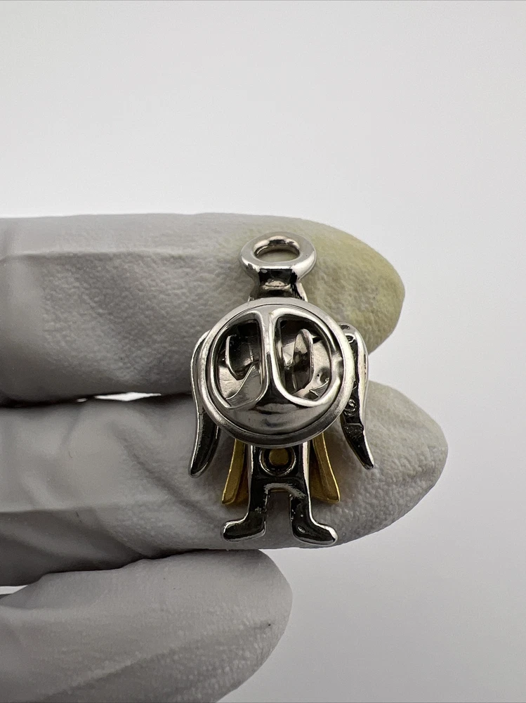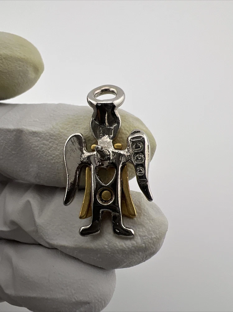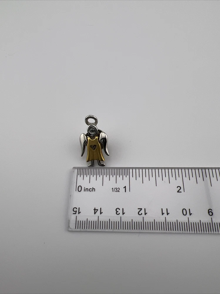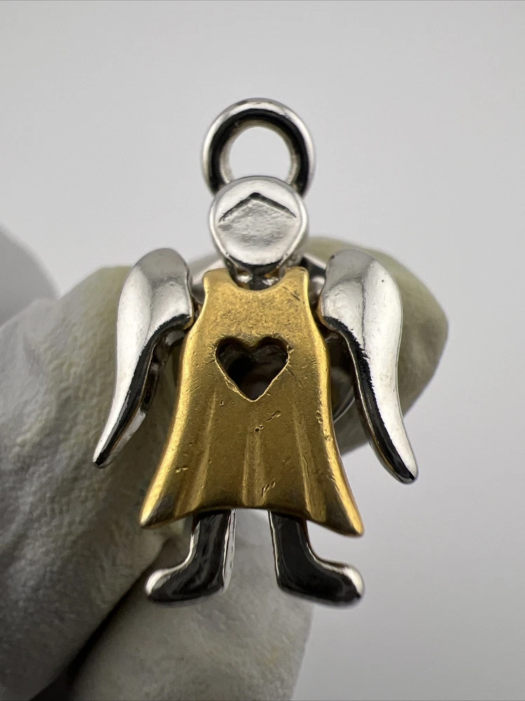 GCI Gold & Silver Tone ANGEL WITH CUT OUT HEART Brooch Lapel Tie Hat Pin 1” This pin does have a few scratches on it and signs of wear and tear.
