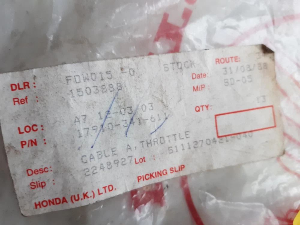 Country/Region of Manufacture:JapanItem Length:31.000Unit Of Measure:EachManufacturer Part Number:17910-341-611Part_Type:Control Cables & AccessoriesOEM Number:17910-341-611Type:Throttle CableCountry of Origin:JapanBrand:Honda