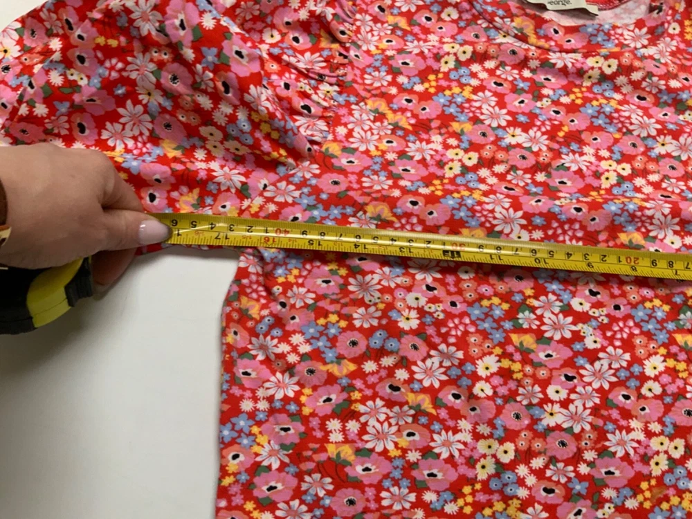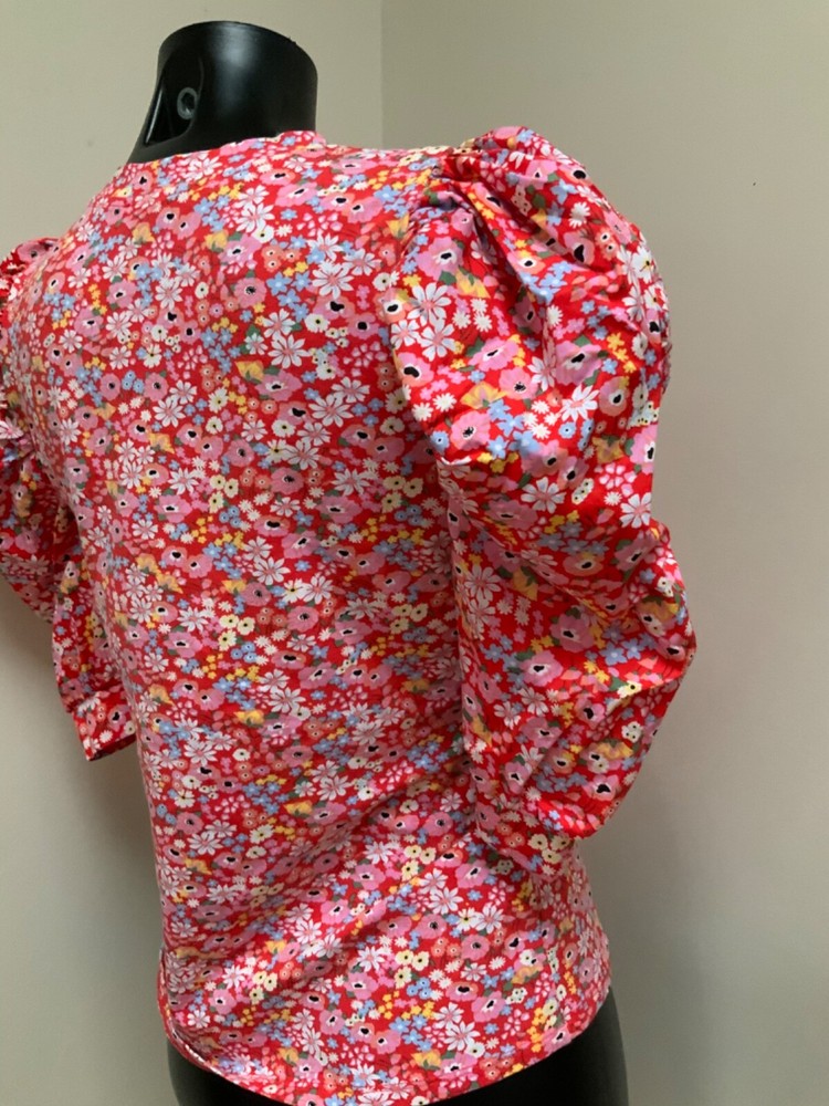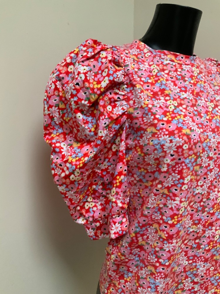 This top is absolutely stunning! The vibrant red ditsy floral print is perfect for summer, and the puff sleeves add a fun, stylish touch. The jersey fabric is soft, stretchy, and super comfortable—great quality for the price. Fits true to size (UK 10) and looks even better in person. Love the details like the neat stitching and flattering cut. Seller shipped it super fast, and the measurements provided were spot on. Definitely recommend—such a cute, versatile piece for casual outings or dressing up!