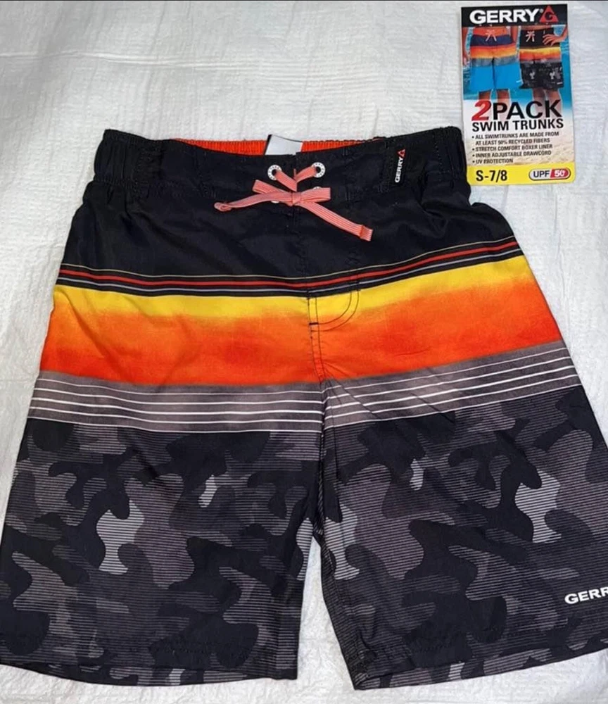 Get ready for a fun-filled day at the beach or pool with these Gerry boys 2 pack swim trunks in size S(7/8). Made of high-quality polyester material, these trunks will keep your little one comfortable and protected from the harmful rays of the sun with a 50+UPF rating. The colorful multicolor design will make him stand out in the crowd and the trunk style provides ample coverage for all the splashing and playing. Perfect for boys who love to swim and play, these trunks are a must-have addition to any beach or pool day. The brand Gerry is known for its quality products and these trunks are no exception. So, grab a pair of these swim trunks today and get ready for endless summer fun!