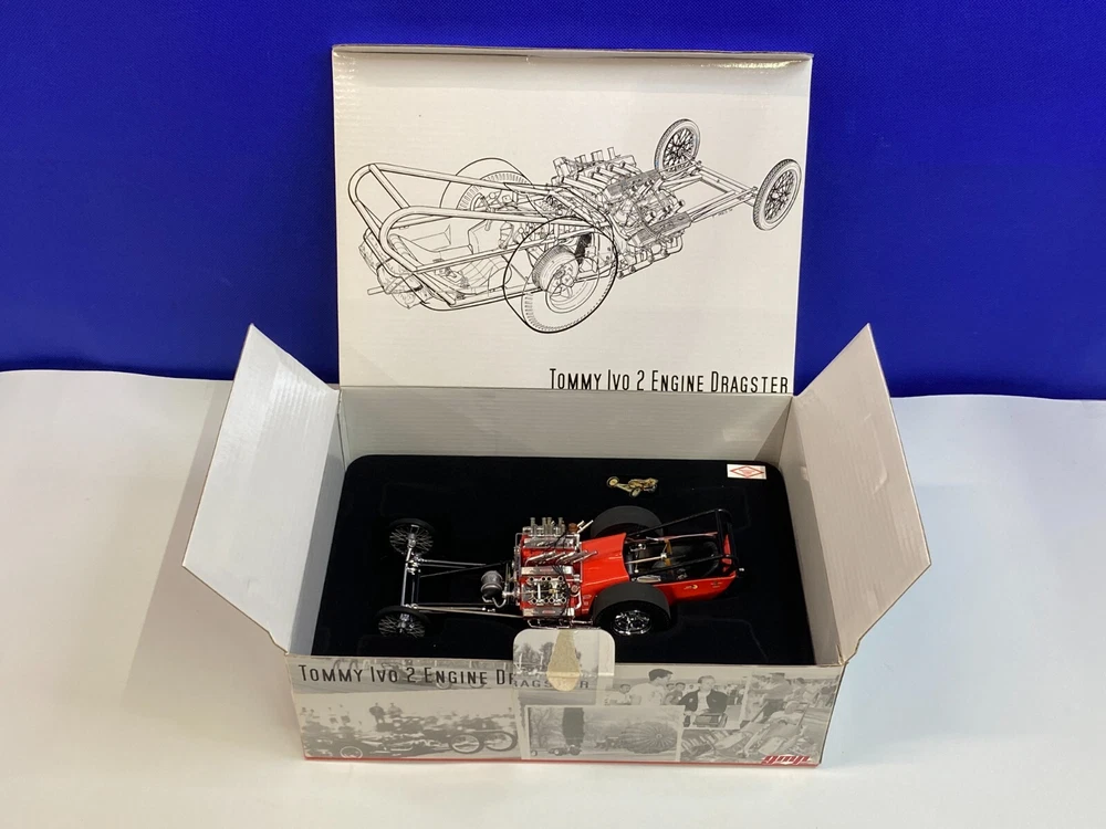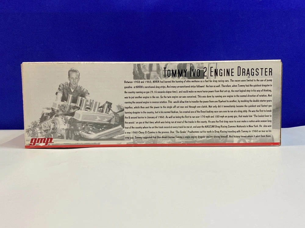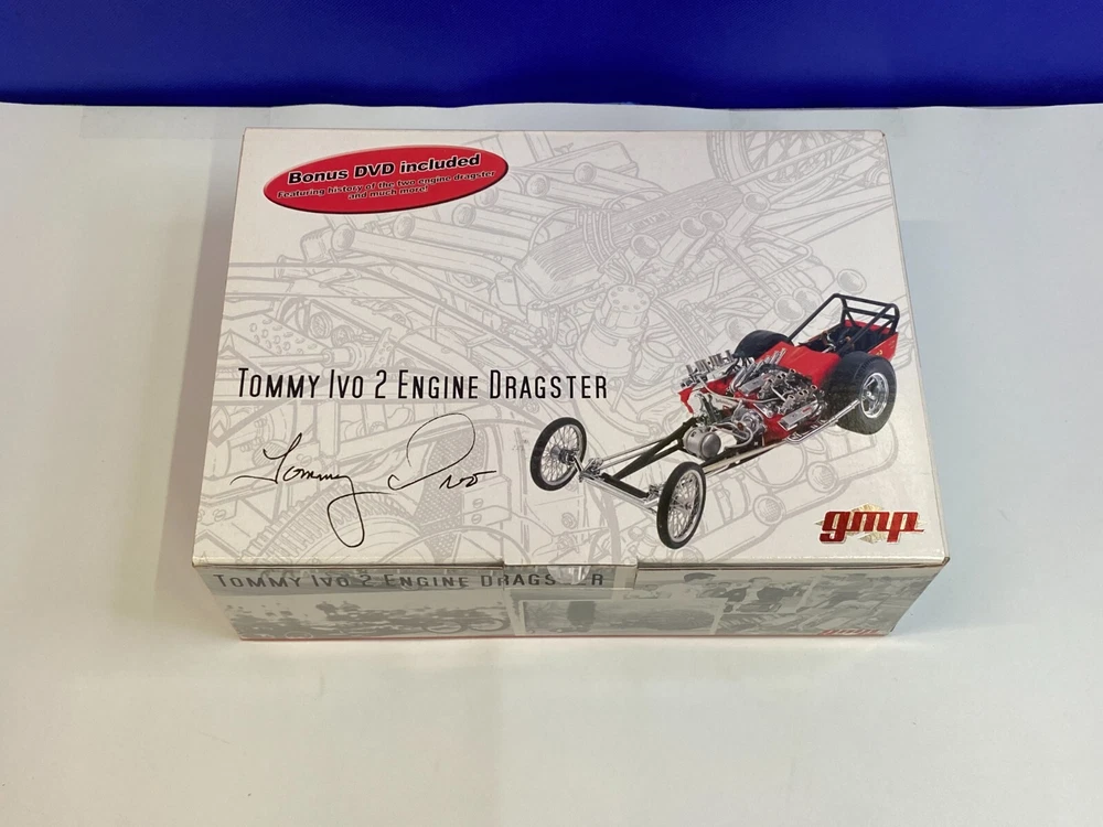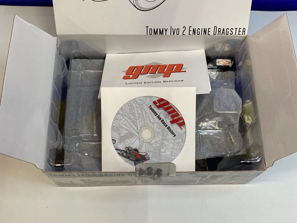 UP FOR YOUR CONSIDERATION IS A GMP 1/18 SCALE TOMMY IVO 2 ENGINE DRAGSTER W/ BONUS DVD. ITEM IS 1 OF 5000. ITEM IS NEW IN THE PACKAGE. CAR & BOX LOOK TO BE IN NICE CONDITION. ITEM WAS ONLY TAKEN OUT OF BOX FOR PICTURES. CHECKOUT PICTURES FOR FURTHER DESCRIPTION. THE ITEM IN THE PICTURES IS THE ITEM YOU WILL RECEIVE. WILL BE PACKAGED AND SHIPPED WITH CARE. THANKS FOR LOOKING.. I PACK ALL ORDERS WITH CARE AND SHIP THEM IN A TIMELY MANNER TO ENSURE SAFE ARRIVAL OF YOUR GOODS. IF SOMETHING ARRIVES AND IS NOT TO YOUR SATISFACTION, PLEASE LET ME KNOW AND I WILL MAKE IT RIGHT. FEEDBACK WILL BE GIVEN TO BUYERS, WHEN FEEDBACK IS GIVEN TO SELLER. THANK YOU FOR YOUR BUSINESS.