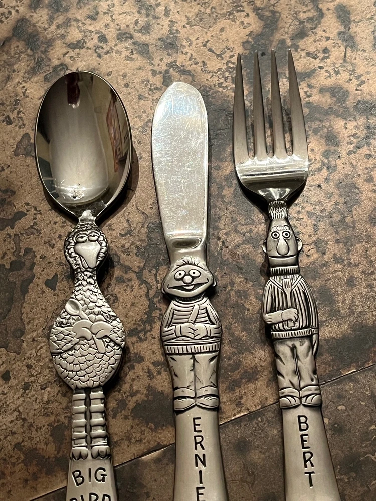 LONG LIVE SESAME STREET!!! Vintage child's flatware set with Ernie, Bert and Big Bird. In good used condition as shown in the photos. SHIPPING IS FREE. purchase by December 19 to allow receipt before Christmas or Hanukkah PLEASE ASK ANY AND ALL QUESTIONS BEFORE BIDDING. Payment is expected within 24 hours of auction's end.