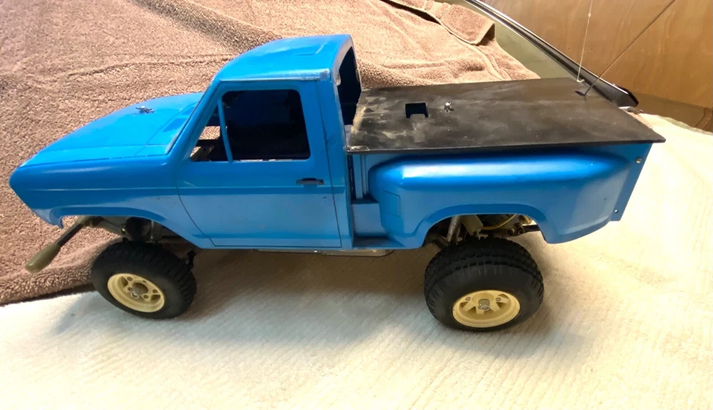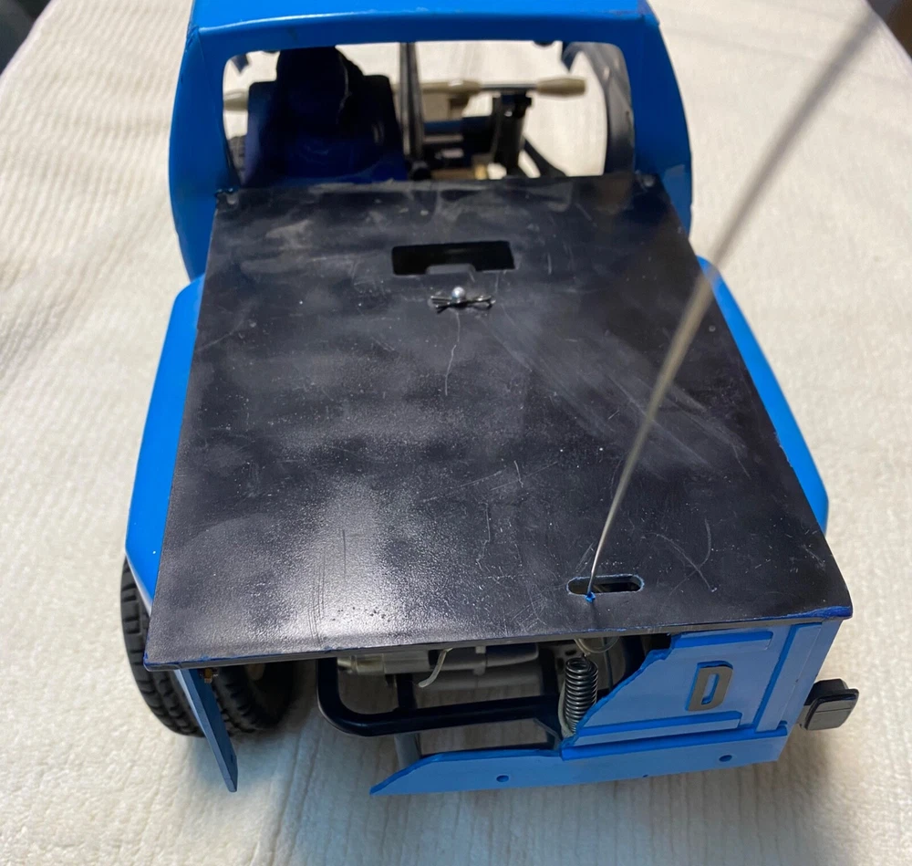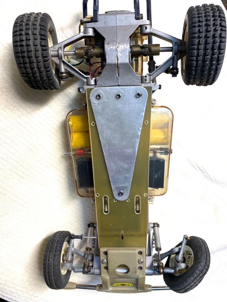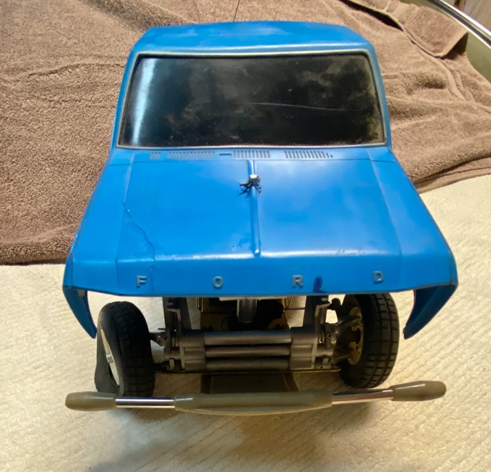 This vintage Tamiya 1/10 R/C off-road racer is a must-have for any collector or hobbyist. With its blue color and Ford truck replica, this model is a rare find. The recommended surface for this hobby grade model is off-road, and it runs on electric battery. The Tamiya brand is known for its high-quality plastic models, and this one is no exception. At a scale of 1:10, this model is perfect for display or play. It's a great addition to any collection and is sure to impress. Don't miss out on the chance to own this unique piece of RC model vehicle history. TAMIYA Racing Buggy Rough Rider vintage rare. Does not have original body, All original suspension, complete with Futuba receiver and servos. Does not include radio. This is from the 80's. Its been in my closet for years, was a functioning unit but I have not tested anything as I don't have the charger or radio. Sold as is due to not being able to test. Very Good condition for its age. Review the pictures, this has had very little use. Has original plastic housing for the battery and radio electronics which is somewhat rare. Passenger side front tire is dry rotted and a tie rod is missing for that same wheel, see pictures. Ford truck body is very rough condition, there are some pieces missing and there are some cracks. It really the chassis that is in like new condition. Let me know if you have any questions.