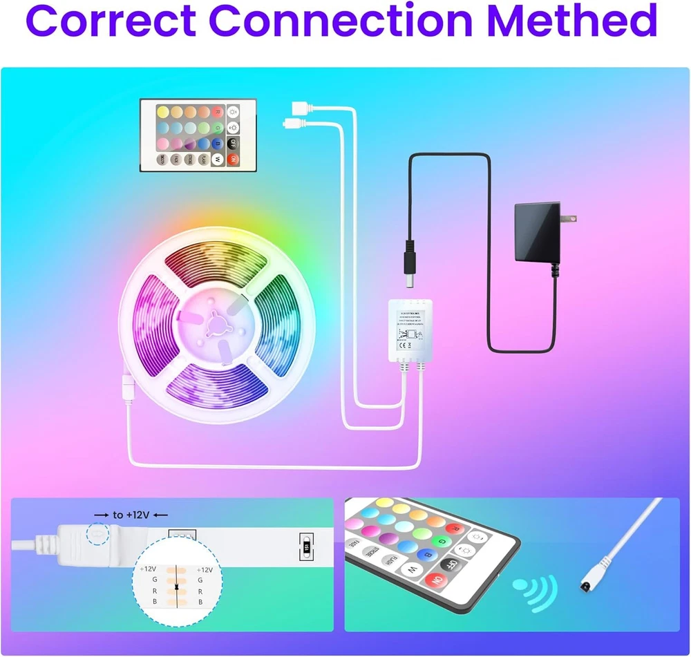 GUPUP LED Strip Lights,Rope Lights,Bluetooth APP 100 FT, Multicolor Product Details Color: Multicolor Brand: GUPUP Indoor/Outdoor Usage: Indoor Special Feature: Color Changing Light Source Type: LED Power Source: Corded Electric Light Color: color changing led strip light Theme: Music Occasion: Christmas Style: Modern Material: Wood Controller Type: app control,remote control Connectivity Protocol: Bluetooth Connectivity Technology: Bluetooth Number of Light Sources: 24 Voltage: 24 Volts Wattage: 60 watts Included Components: 24-key remote control, installation equipment Number of Items: 2 Item dimensions L x W x H: 6.7 x 7.1 x 2.4 inches Control Method: Voice Water Resistance Level: Not Water Resistant Wireless Communication Technology: Bluetooth Manufacturer: GUPUP LED Part Number: WFDS018 Item Weight: 9.1 ounces Product Dimensions: 6.7 x 7.1 x 2.4 inches Item model number: WFDS018 Assembled Height: 2.4 inches Assembled Length: 6.7 inches Assembled Width: 7.1 inches Special Features: Color Changing Batteries Included?: No Batteries Required?: No Product Dimensions : 6.7 x 7.1 x 2.4 inches; 9.14 ounces Item model number : WFDS018 Manufacturer : GUPUP LED Color: Multicolor Brand: GUPUP Indoor/Outdoor Usage: Indoor Special Feature: Color Changing Light Source Type: LED Power Source: Corded Electric Light Color: color changing led strip light Theme: Music Occasion: Christmas Style: Modern Bright brightness: Rolls of light strips are long enough to reach around your entire room,including bedroomliving room rridorstaircase and so on. High brightness and dimmable Lighting support multiple scenarios Comfortable interaction:① Memory function: The lights automatically remember the last mode settings when you use again. ②Timer Function:Simply control your lights, it can save time and trouble to bring a smart feeling to your life. ③Multi-scene mode: The light strip can be used to decorate your home with 64 scene modes. Smart APP control:Control the LED lights for room via App,24-key remote control. Different Modes can be chosen, like Flashing, Quick, Jump,Fade,etc. you can freely choose to control 16 million colors and adjust the light brightness from 1% to 100% to suit the various places. Sync with Music:With bulit in sensitive microphone,this ambience Lights color changing sync to music and follow the voice rhythm. Firmly stick and Easily intall:With 3M adhansive,the lights can be firmly sticked on wooden or lacquer wall and other clean surfaces.besides,the whole set of equipment is super easy to install and can be inserted.