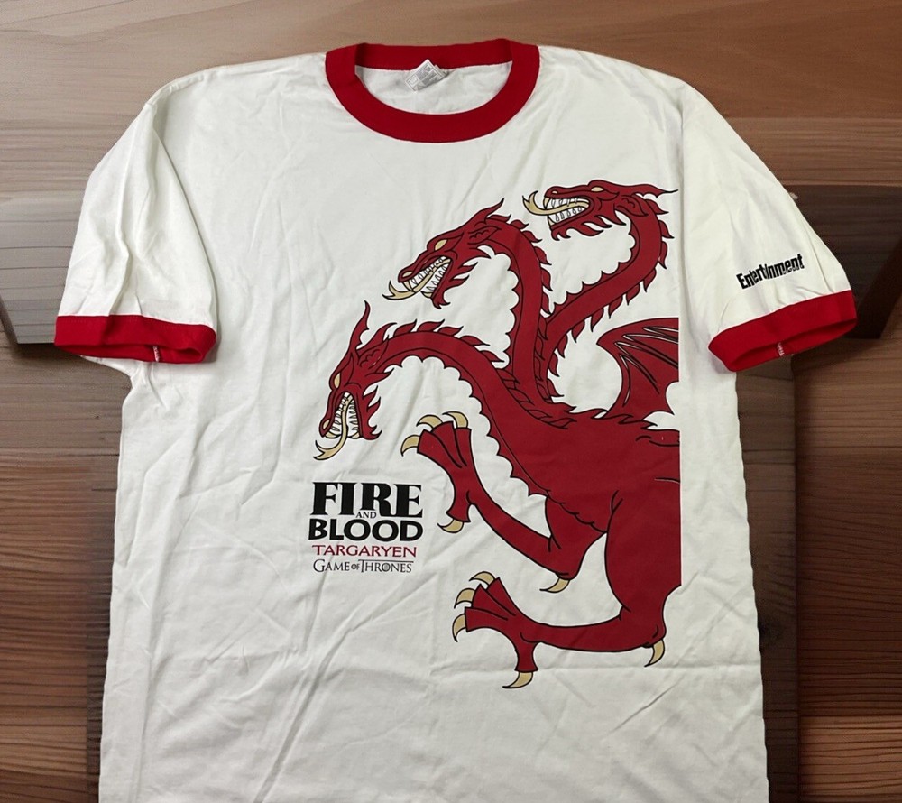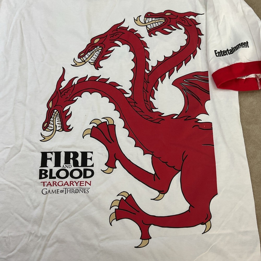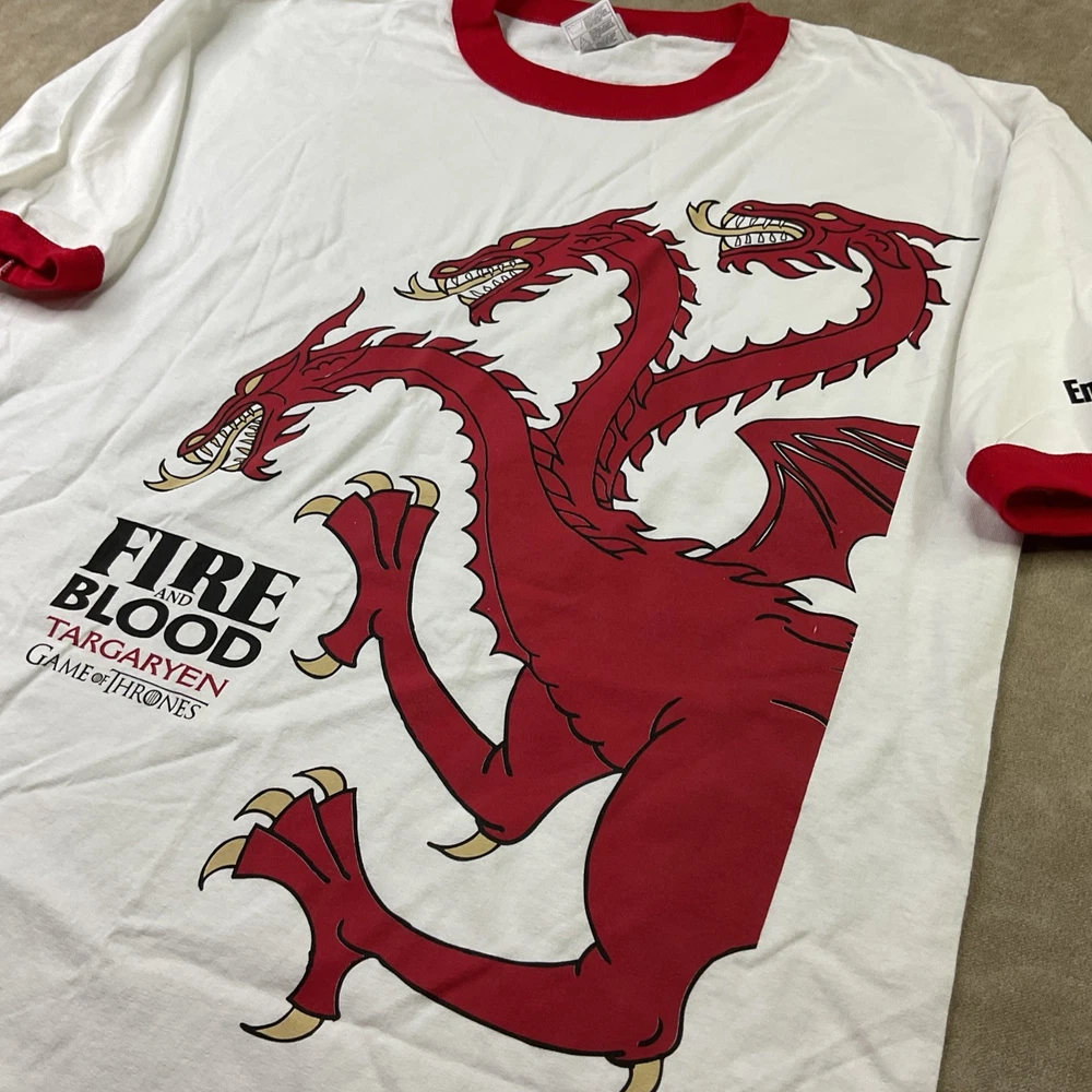 in great condition gently used. measurements pit to pit 23” length 30” shoulder to cuff 10” Embrace the fire and blood of the Targaryen dynasty with this compelling Game of Thrones T-shirt, featuring the iconic dragon logo that resonates with fans of the epic series. Crafted from 100% cotton for ultimate comfort, this white tee is a testament to the enduring legacy of the House of the Dragon. In a versatile size XL, this Alstyle Apparel & Activewear garment is tailored to fit with a classic crew neck and short sleeves, making it ideal for all-season wear. Whether you're heading out for a casual day or gathering with fellow enthusiasts, this T-shirt is a stylish nod to the legendary television saga.