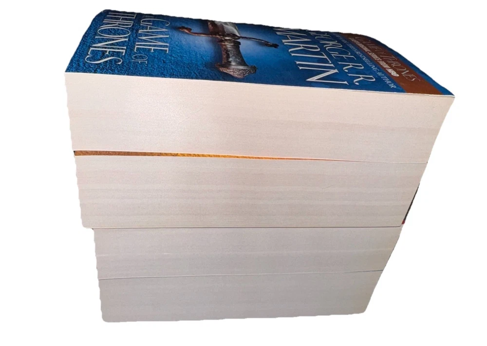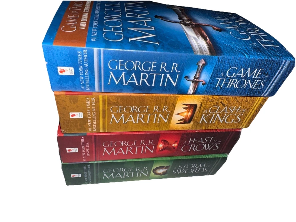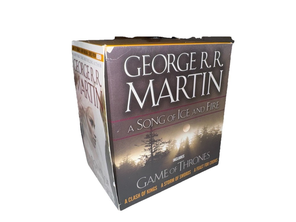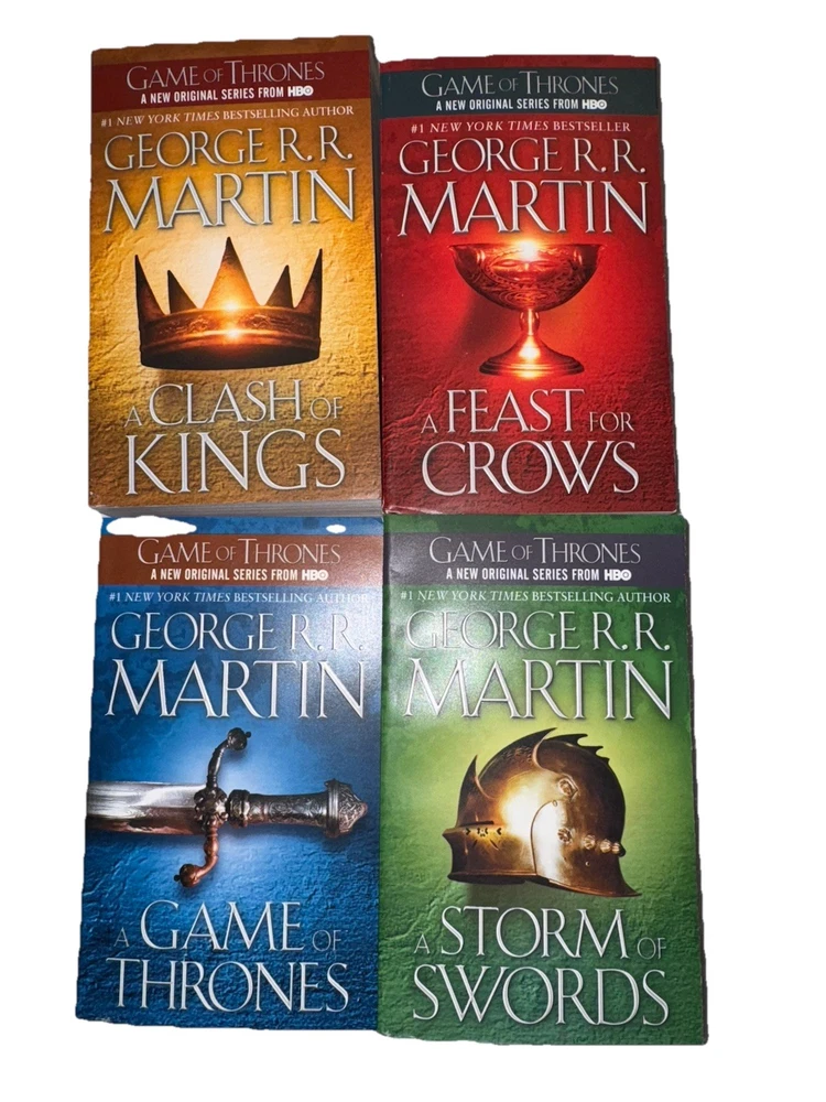 This product is a set of four novels from George R. R. Martin's "A Song of Ice and Fire" series, including "A Game of Thrones," "A Clash of Kings," "A Storm of Swords," and "A Feast for Crows." Published by Random House Publishing Group in 2011, these mass market paperback books are in English and span a total of 120.6 ounces. The series falls under the genres of fiction, with elements of action & adventure, fantasy/epic, and media tie-ins, making it a compelling read for fans of epic storytelling and intricate world-building.