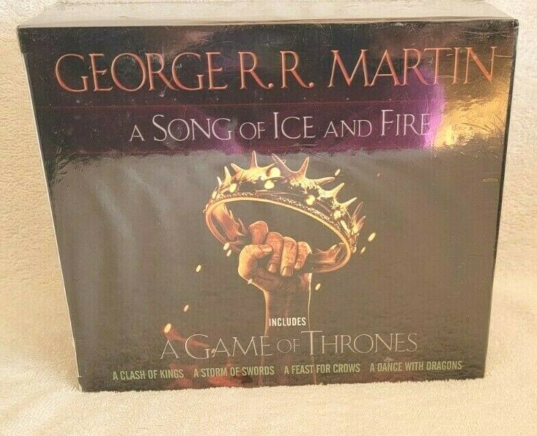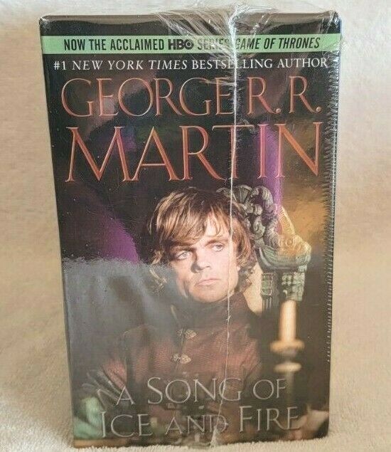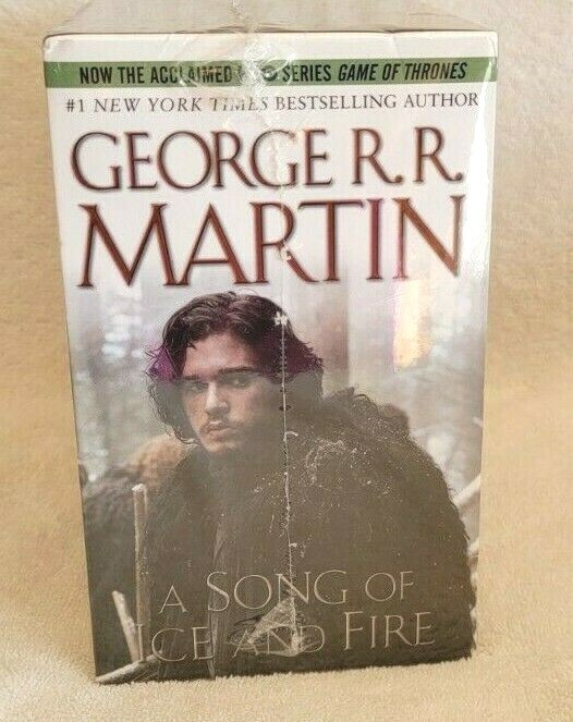Up for your consideration is A Song Of Ice and Fire, Game of Thrones 5 Book Boxed Set, New and Sealed. There is a tiny tear in the packaging. It is in the upper left hand corner near at the corner of the blue book. You can see this in the first picture. What you see in the picture is what you will receive. Please ask any questions before purchasing Please reference photos a nd listing for further details. Note: The color of the item might differ slightly from the pictures due to lighting and camera settings . Non Smoking Home. IF RETURNED MUST BE SEALED AND BRAND NEW STILL!!!