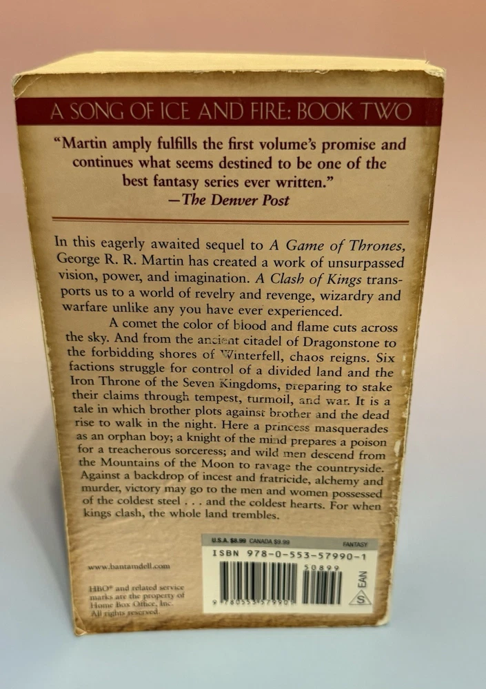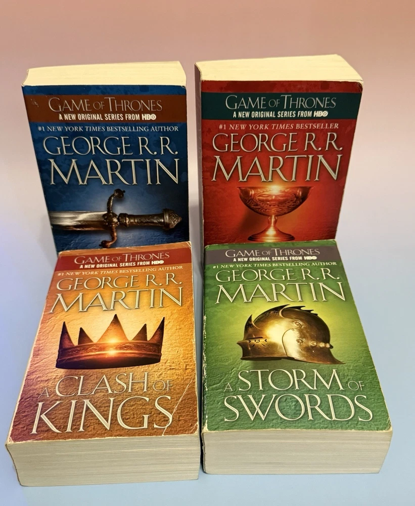 The First 4 books in the “A song of Ice and Fire series” / the game of thrones books. All paperback books. All in great condition no torn pages or any pages missing. Little bit of spine wear from turning of pages / book being open. But that’s it. Be sure to check out my other listings. Lots of cool stuff for sale 👋🏻