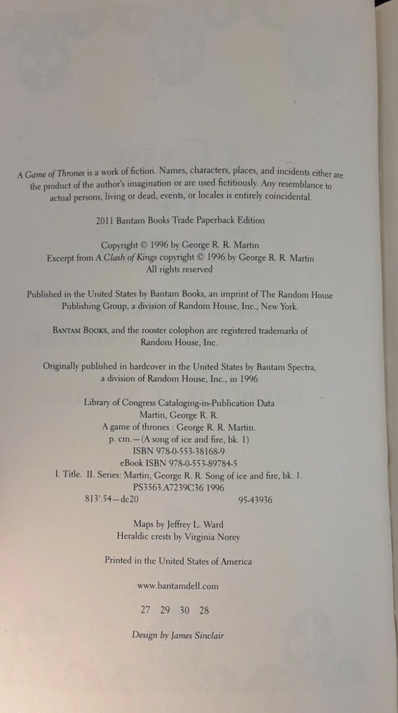 Game of Thrones Book 1 - A Song of Ice and Fire Novel