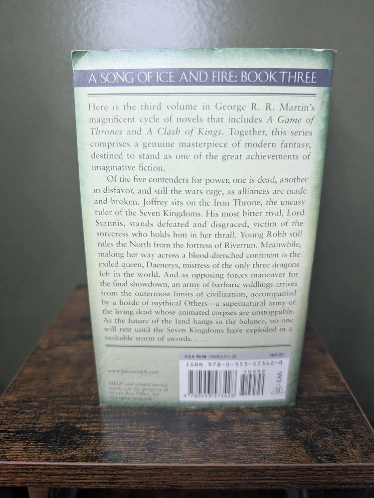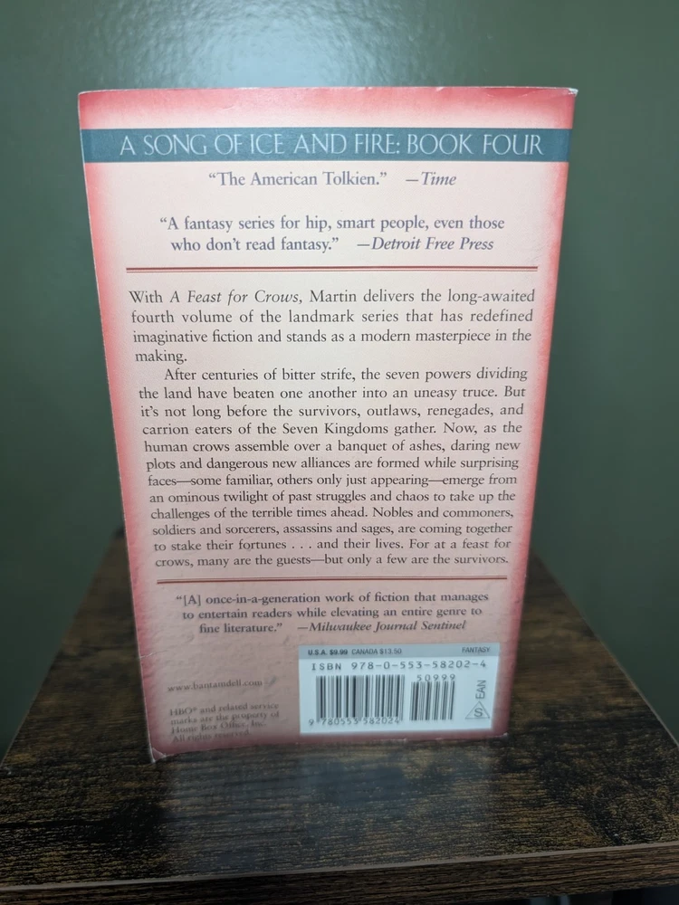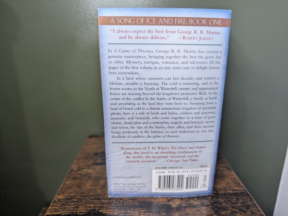 ***There are some upturned corners on the paperback set as pictured. Immerse yourself in the epic fantasy world of Westeros with this complete set of the "Game of Thrones" series. Based on George R.R. Martin's bestselling book series, this collection will take you on a thrilling journey through a land of intrigue, war, and dragons. Follow the battles for the Iron Throne, the rise of the Targaryen dynasty, and the threat of the White Walkers in this captivating series. This paperback lot is perfect for fans of the show and readers who enjoy tales of politics, magic, and adventure.