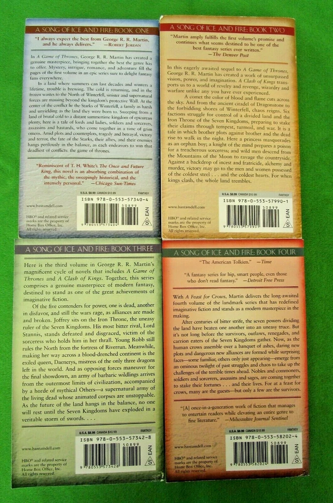A Song of Ice and Fire 4 Book Box Set by George R.R. Martin Paperback 2011 Bantam Books include: A Game of Thrones A Clash of Kings A Storm of Swords A Feast For Crows Excellent condition Check out my other listings, also - will combine shipping whenever possible