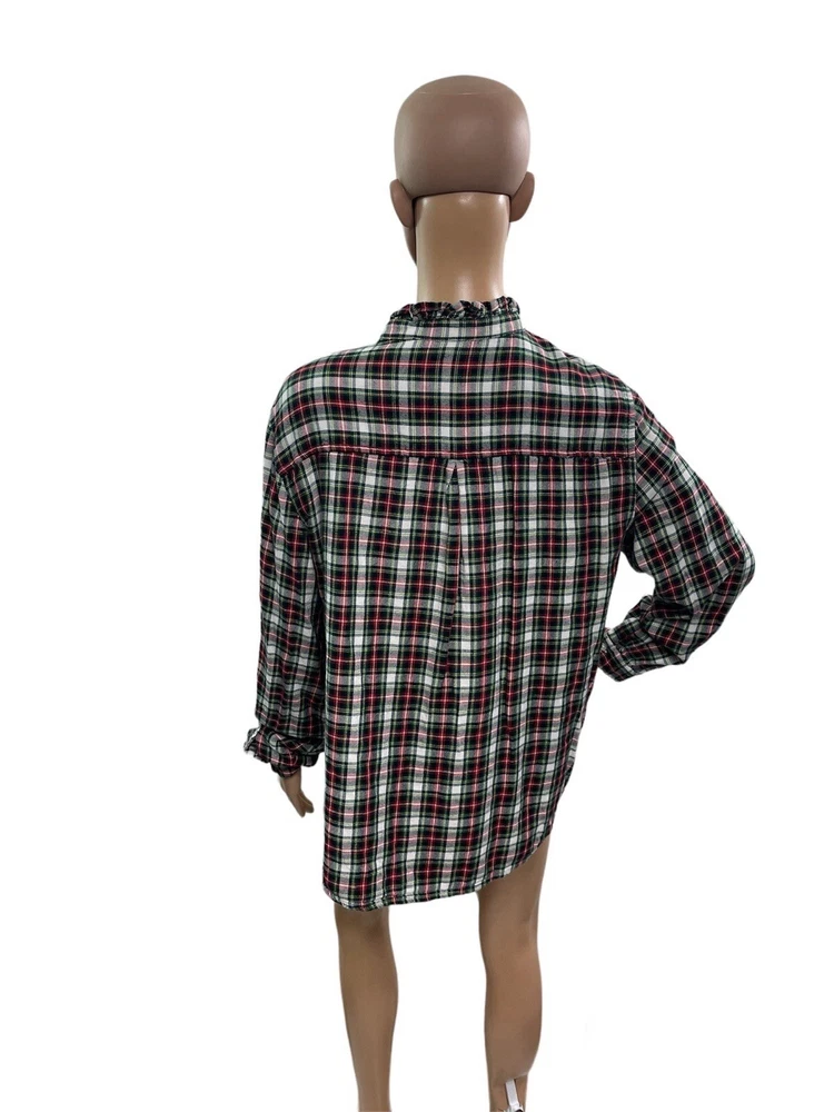 Gap Women’s Size XL Long Sleeve Ruffle Plaid Popover Blouse Armpit to armpit 22” Total Length 25” Measurements taken laying down Excellent condition no rips or stains Smoke free pet free home
