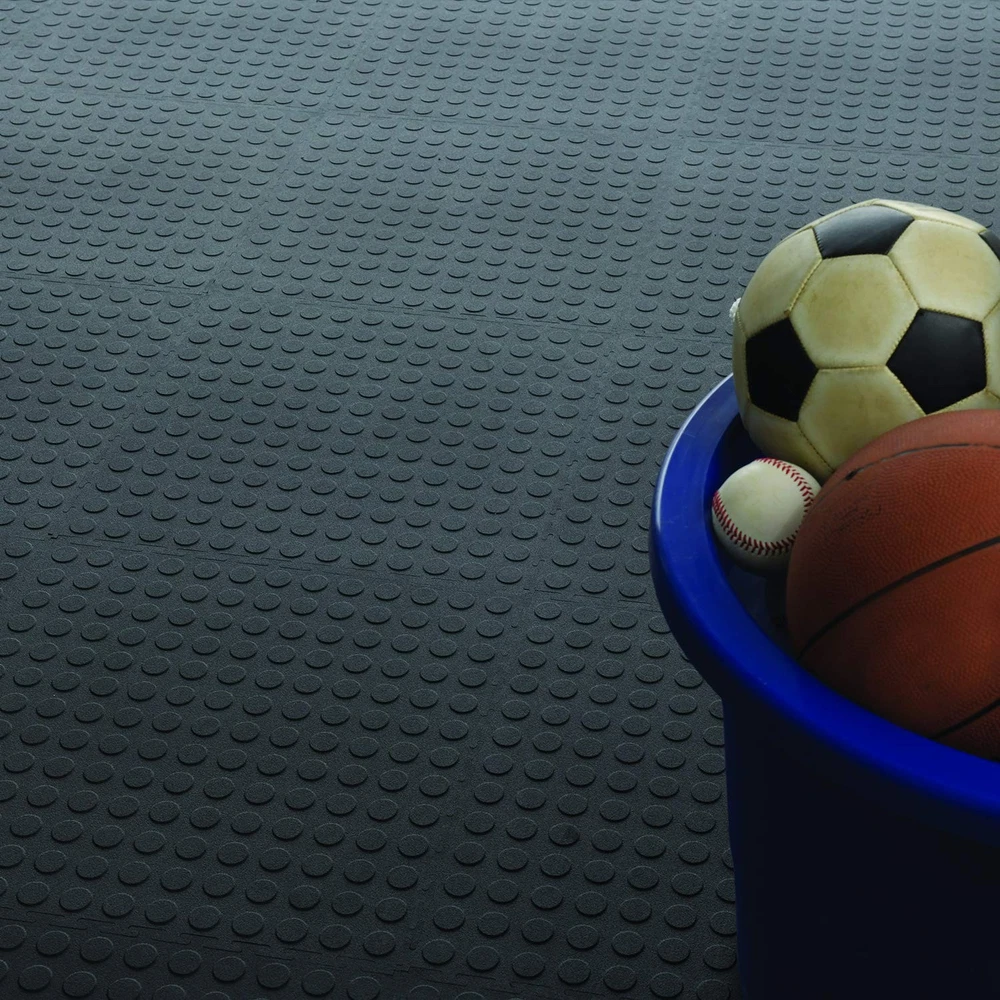 VERSATILE INTERLOCKING TILE FLOORING - ideal to protect floors in a home gym, utility room, garage, shed or entryway. Recycled tiles are safe to use on top of wood, laminate, tile, vinyl, , and other indoor hard floors GARAGE FLOOR TILES - Heat-resistant and puncture-proof, ideal for garages or workshops. Won't tear, dent, shift or compress; safe to drive over with cars, trucks or mowers. Resistant to household chemicals, oils, brake fluids and solvents HOME GYM FLOORING - Impact resistant, non-porous and waterproof - won't absorb sweat or liquids. Use the dense flooring under exercise machines and weight machines. Won't dent, puncture, tear or pull apart like EVA foam mats and tiles MULTI-PURPOSE FLOORS - Protect mud room and utility room floors, use in a laundry room or craft room to catch spills. The UV resistant tiles won't fade or crack. No adhesive glues or tapes required COVERAGE AREA - Buy pack for a solid color floor or purchase both colors for a checkered floor. Since the tiles are non-permanent, readjust and reposition in any area or pattern