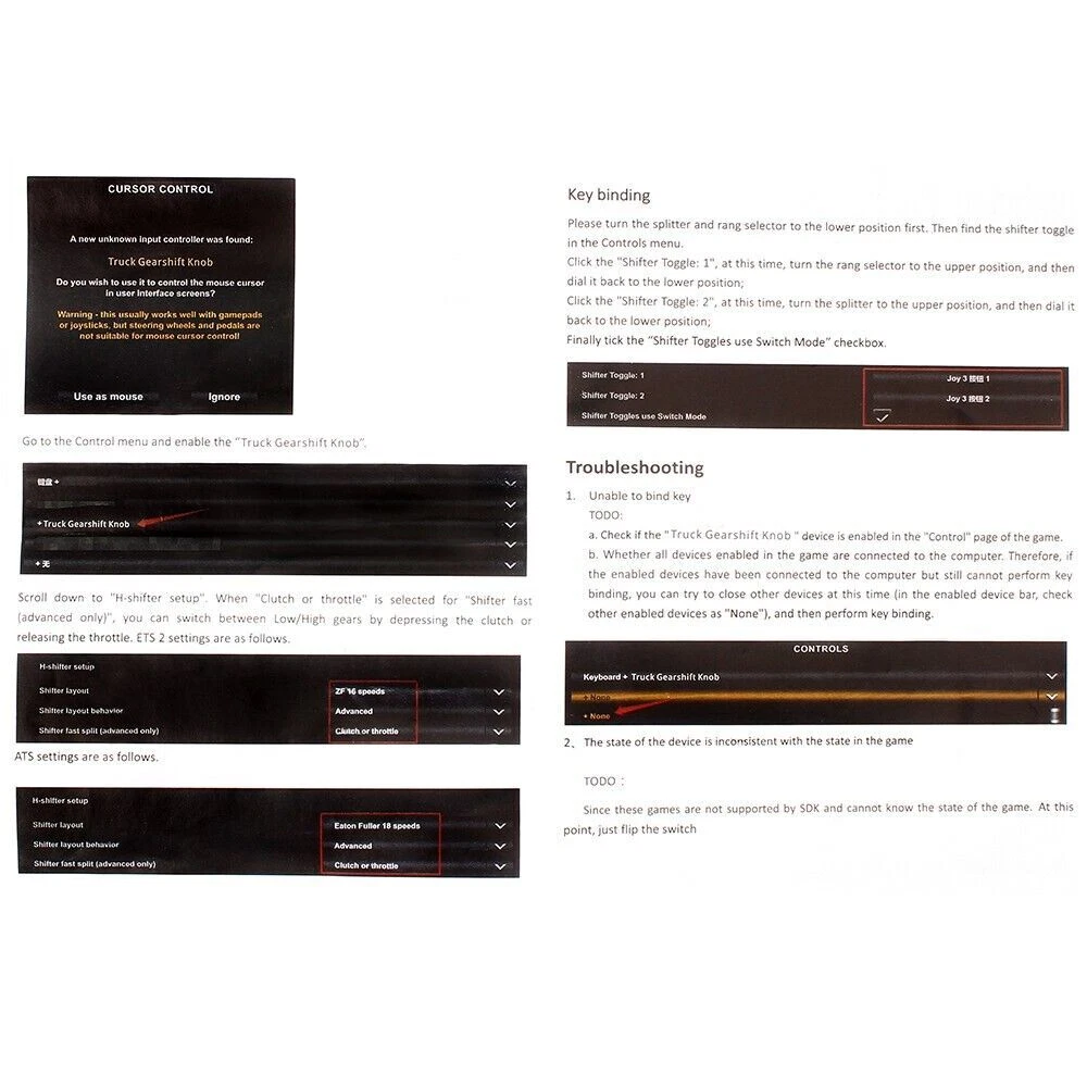 Gear shift knob from real truck Scania, so materials are very nice to the touch and quality Supports the following devices: for h-shifter Logitech G25/ G27/G29 for Thrustmaster TH8A Benefits: -There are 2 s witches; - Plugs into your computer's USB; - No driver for PC required; - Plug and Play; - Simple and reliable fastening on h-shifter; - Cable length = 1.8 meters. The knob is reccomended for the following games: - Euro Truck Simulator 2 - American Truck Simulator - Bus Driver - Farm Expert - Farming Simulator PACKAGE INCLUDED: 1 x Shift Knob