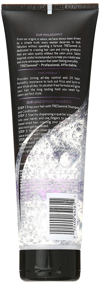 Product Description Tresemme Tres Two, Mega Control, Hair-Gel, for 24-Hour, Frizz Control #5, 9 Ounce (Pack Of 4) TRESemmé Mega Frizz Control Hair Styling Gel, Need a styling gel that delivers mega hold without feeling stiff or sticky? TRESemme Mega Control Hair Gel provides all-day resistance to humidity and keeps your style going strong without crunchy stiffness. After you put the work into your style, you better lock it in before you lose it. Sprays work best to lock in some styles, but when you're aiming for a sleek, tight look, you should use a styling hair gel for extra hold and humidity control. Built for control and ready to be styled, TRESemme Mega Control Hair Gel is an anti-frizz gel, giving you all-day hold with built-in 24-hour humidity protection. This mega control hair gel is perfect for slicking, shaping, or sculpting hair for that perfect look. Our unique, alcohol-free hair gel formula is great for all hair types and designed to keep your hairstyle on lock without leaving hair looking wet or feeling sticky. Step 1: Prep your hair with your favorite TRESemme shampoo and conditioner and hair styling products. TRESemmé Mega Frizz Control Hair Styling Gel, 9 oz MEGA FIRM STYLING HAIR GEL: TRESemmé Mega Control Hair Gel is a styling gel that adds long-lasting shine and mega hold to your hair for all-day control ANTI-FRIZZ GEL: This alcohol-free hair styling gel delivers all-day control with humidity resistance to help keep frizz away MAXIMUM HOLD: TRESemmé Mega Control Hair Gel is a stiff hair gel that locks in your style without ever looking sticky or wet TREND LED, RIGOROUSLY TESTED: Every ingredient is carefully selected to ensure your hair receives the best possible care. We do not test on animals and our hair products are PETA-approved HAIR CARE TIPS FROM OUR STYLISTS: Dispense a quarter-size drop into your hands and use your fingers to evenly coat damp hair, creating your desired style. Add more gel as needed FRIZZ FREE: Formulated with coconut oil, this formula gives all-day hold and 24-hour humidity resistance for resilient styles ALL-DAY HOLD: Level 5 hold, our strongest hold hair gel, is Infused with coconut oil. Achieve moisturized hair without compromising on hold CRUELTY-FREE: TRESemmé prohibits animal testing for our hair products and the ingredients used in them, anywhere in the world DO IT WITH STYLE: With professional quality hair products like our Mega Control Alcohol-Free Gel, you can confidently create your personal style Super firm control. Resistance To Lock Out Frizz And Lock In Style All Day Holds For 24 Hours In High Humidity Mega Firm Control For All Hair Types Product Benefits Humidity Resistant, Frizz Control Hair Type Curly Material Type Free Mineral Oil Free, Sulfate Free, Alcohol Free, Aluminum Free, Formaldehyde Free Scent Unscented Liquid Volume 9 Fluid Ounces Ingredients WATER (EAU), VP/DIMETHYLAMINOETHYLMETHACRYLATE COPOLYMER, PPG-5-CETETH-20, PHENOXYETHANOL, TRIISOPROPANOLAMINE, OLETH-20, CAPRYLYL GLYCOL, CARBOMER, PVP, SORBITOL, FRAGRANCE (PARFUM), PROPYLENE GLYCOL, PEG-12 DIMETHICONE, DISODIUM EDTA, PANTHENOL, COCOS NUCIFERA (COCONUT) OIL, BENZYL ALCOHOL, CITRONELLOL, GERANIOL, HEXYL CINNAMAL, LIMONENE, LINALOOL, EXT. VIOLET 2 (CI 60730).
