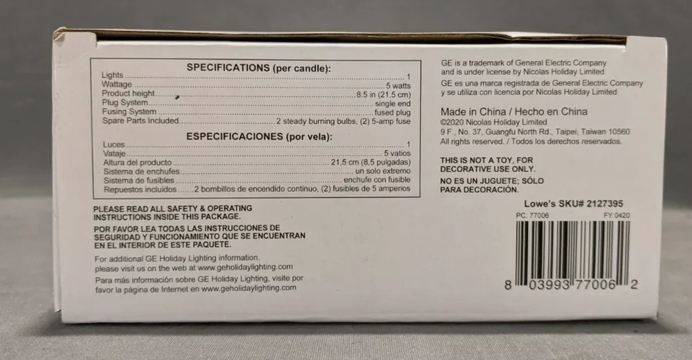You will receive 2 boxes with 2 candles in each box for a total of 4 candles 8.5" tall wired window candles 5-Foot white cord set with on/off switch C-7 candelabra 5-watt 1000 hour long life bulb Replacement bulbs and fuses included for added convenience For indoor use only