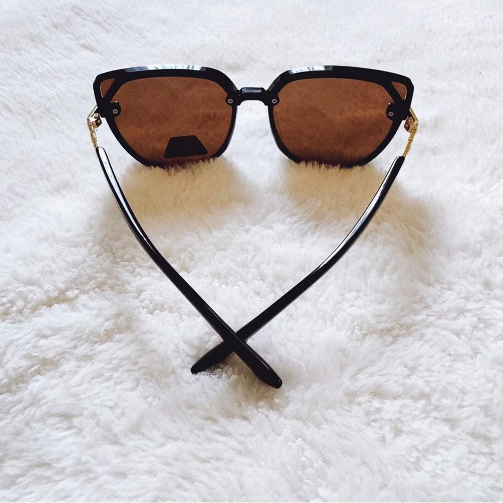 Experience the fusion of elegance and craftsmanship with these sophisticated Genevieve sunglasses, featuring a unique frame and intricate temple detailing. Perfect for those who appreciate a mix of classic style and modern flair, these sunglasses are an essential accessory for any fashion-forward individual looking to make a statement. These glasses comes with a fabric pouch and eyeglasses cloth wipe. Some reflections may be pictured due to the mirrored lenses - they are not flaws to the product. The sunglasses provides UV400 protection. Lens Width: 56mm Bridge Width: 14mm Temple Length: 155mm Height: 50mm