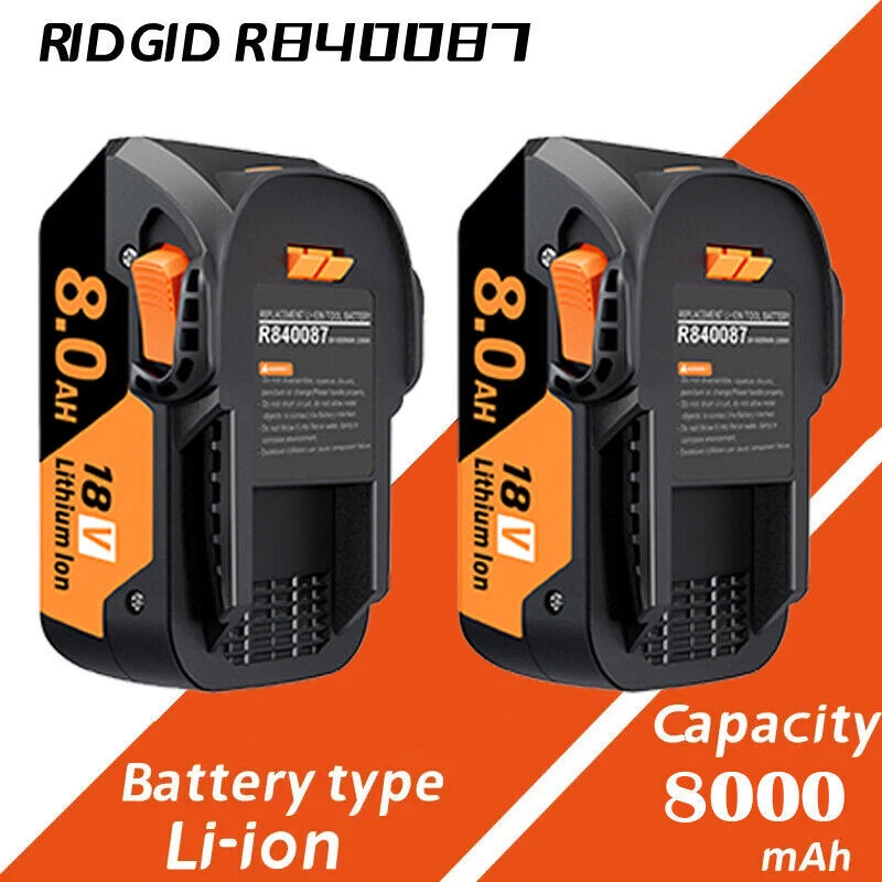 Store category Sign Up Now ! You may also like Top-toolbattery Product Description Specification: Battery Voltage: 18V Battery Type: Lithium-ion (Li-Ion) Capacity: 3.0AH/4.0AH/6.0AH/8.0AH (Option) Condition: Replacement Battery, Brand New Compatible Brand: For RIDGID Shipping: Free shipping, 24H Dispatch, 3-6 days delivery Certificate: CE PSE ROHS FCC Compatible Part No: For RIDGID 18V LITHIUM-ION BATTERY PACK R840083, R840085, R840086, R840087 Series Compatible Models: For RIDGID 18V LITHIUM-ION BATTERY PACK R840083, R840085, R840086, R840087 Series AC840087 AC840085 AC840087P Compatible With: For RIDGID 18V cordless power tool R840095 GEN5X Charger What's Included:(Choose the capacity and quantity you need) 1-4x Li-ion Battery for Ridgid 18V R840087 1-4x Manual Note: 1. The battery must be FULLY charged before first use. 2. The battery is stored in a cool and dry place. 3. Do not Separation, extrusion, and impact. 4. Do not put battery into water and fire. 5. Keep away from children. CertificateUL & CE: Zahlung Lieferung Rückkehr Politik Kontaktiere uns Über uns Payment * We only accept PayPal. * All major credit cards are accepted through secure payment processor PayPal. * We ship to your eBay or Paypal address. Please make sure your e eBay and Paypal address is correct before you pay. Delivery details * Items are dispatched within 24 hours(except weekends and holidays) and shipped from United States. * Orders from the United States will all be shipped out via USPS/UPS. The shipment usually takes 2-4 business days (Saturday and Sunday excluded). * Local pick up is not available. * All items will be shipped to buyer's PayPal address. Please check your PayPal address is correct before pay . Terms of sales Welcome to our store! We are a professional worldwide wholesale factory. High product quality, reasonable prices, excellent customer service and a reliable credit standing is our tenet.If you like our products, please add my eBay shop to your "My Favorites" list. All the products we are selling include 10 years factory warranty , don’t cover items that have been abused, burned and damaged in any form . * if you has any problems with this item,please email us first then we can solve it in a friendly way ,once we check it is indeed a problem with the item,we will full refund or resend you,and in order to save your time you don't need to return this products to us! * For all returned products, buyers MUST contact us for the returning address. * In all cases, sellers pay shipping fees to return products for exchange or refund. Refund will be made upon receipt of the returned item Contact us Dear buyers,we appreciate your business, if you are satisfied with our service , please leave us a Positive feedback and rate the details of the transaction (Detailed Seller Ratings) with a " Pefect Stars ". We focus on designing and manufacturing various kinds of power tool batteries with high quality and competitive price. We will do our best to serve you! Am 24.09.21 hat der Verkäufer die folgenden Angaben hinzugefügt: Am 04.11.21 hat der Verkäufer die folgenden Angaben hinzugefügt: Am 04.11.21 hat der Verkäufer die folgenden Angaben hinzugefügt: