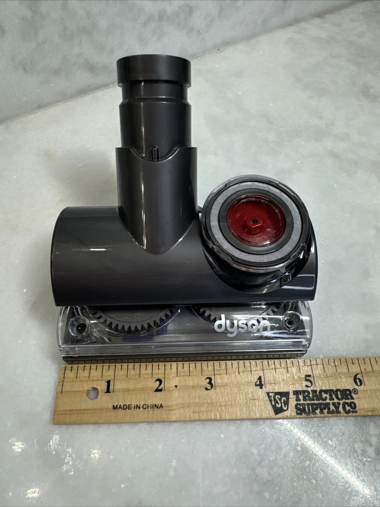 Genuine Dyson DC38 DC39 DC39C Tangle-Free Mini Turbine Tool Vacuum Cleaner Head OEM Description: This Genuine Dyson Tangle-Free Mini Turbine Tool is an OEM replacement part for Dyson models DC38, DC39, and DC39C, among other compatible vacuums. Designed by Dyson engineers to address the problem of hair tangling around brush bars, this innovative tool uses counter-rotating brush heads to lift hair and fibers from carpets and upholstery, directing them straight into the bin. This ensures powerful suction and hassle-free cleaning without hair wrapping around the brush. Features: Condition: Great, super clean condition with no chips or cracks. Functions perfectly. Model Compatibility: CY22, CY23, DC21, DC22, DC23, DC25, DC26 City, DC27, DC28, DC28C, DC33, DC33C, DC37C, DC39, DC39C Origin, DC40, DC41, DC41C, DC46, DC47, DC50, DC52, DC54, DC65, DC66, DC78, CY18, UP13, UP14, UP15, UP16, UP19, UP20, and more. Part Numbers: #925068-02, DY-92506802; replaces 907049-22 and other similar part numbers. Tool Only: This listing includes the turbine tool only. Highlights: Dyson Innovation: Tangle-free design with counter-rotating heads eliminates brush bar tangling. Effective on Hair & Fibers: Ideal for carpets and upholstery where pet hair and fibers collect. OEM Part for Reliable Compatibility: Made by Dyson, ensuring a perfect fit with compatible models. Please see all photos for close-up details and reach out with any questions before purchasing!