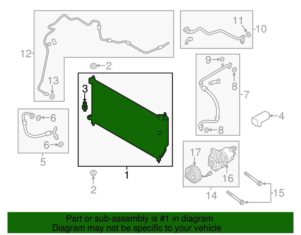 World Parts Direct Genuine GM Air Conditioning Condenser 19318095 Part can be found as # 1 in the diagram above Product Description City Express. Brazed and mechanically bonded aluminum construction for OE durability This GM Genuine Part is designed, engineered, and tested to rigorous standards and is backed by General Motors Original equipment parts are designed to work with your GM vehicle safety systems -- aftermarket replacement parts may not meet the same OE safety regulations, depending on the part type Specifications Brand GM Manufacturer Part Number 19318095 SKU 19318095 Product Genuine GM Air Conditioning Condenser 19318095 Replaces 19316996 ONLY PART REFERENCE #1 ON THE DIAGRAM IS INCLUDED About Us WorldPartsDirect is a small, Texas based business located in the Dallas metroplex. There are about twenty of us that work tirelessly to get you the genuine, OEM parts you need at unbeatable prices. We pride ourselves in top quality customer service and our commitment to be the business we would want to shop with. We have one of the largest inventory networks in the country along with some of the most aggressive discounts. We love cars, and we love what we do! We hope you will love shopping with us , and we always welcome feedback on how we can make your shopping experience even better. Terms and Conditions Compatibility Guarantee (optional free service): Applies when you include your VIN during or before checkout. Simply click "Message to Seller" during checkout and include your VIN with any relevant details (ex: driver/ passenger side). Our fitment experts will confirm compatibility before shipping. If we determine that you purchased an incompatible part, we will correct your order if possible. If we cannot correct your order, we will notify you of the issue (ex: discontinued item) and give you the option to cancel. Part Authenticity and Warranty Guarantee: When you order from us, we guarantee that you will receive a genuine, OEM part. We do not stock anything aftermarket! Our parts are warrantied nationwide for 1 year at every Mopar (Chrysler/Dodge/Jeep/Ram) or General Motors (Chevrolet/Buick/GM/GMC) dealer in the country, depending on the brand of part you ordered. We are able to provide documentation that proves the validity of your purchase from our licensed dealership at anytime upon request. This documentation can be used to redeem this warranty if needed at the dealership of your choice and at no cost to you. Return Policy All of our products can be returned within 30 days. Please open a request for any of these reasons: Doesn't Fit Changed My Mind Found a Better Price Just Didn't Like it Ordered by Mistake The reason you pick has no impact on your refund amount, but it has a big impact on us as a seller. Choosing other reasons may delay the refund per an internal investigation and potential eBay appeal. If a part fails at anytime during the 1 year warranty period, any licensed new car dealership in the country that carries your brand of vehicle will replace the part for free. Simply request our dealer invoice for the part and provide it to your preferred dealer along with the defective part. Home • Newsletter Signup • Contact Us Copyright © 2024 World Parts Direct , All rights reserved. Solution by RevolutionParts, Inc. :: Design by OCDesignsOnline