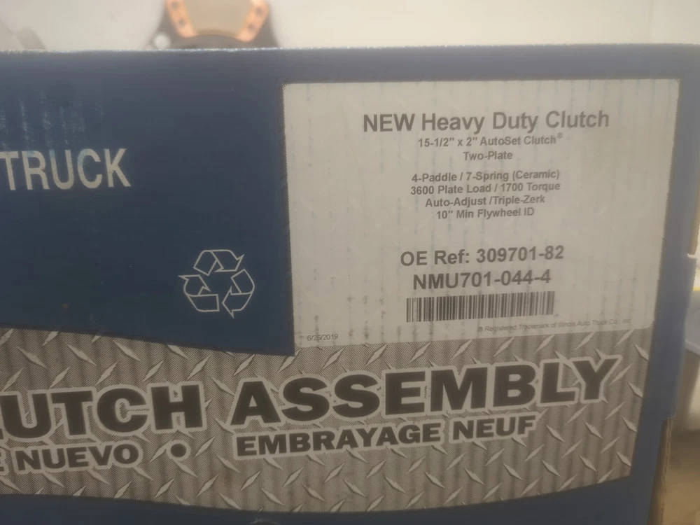The Illinois Auto Truck New Clutch Assembly NMU701-044-4 is a high-quality commercial truck part manufactured in the United States. This unit is a single clutch assembly designed to meet the needs of commercial trucks. Although it does not come with a warranty, this product is reliable and durable, ensuring optimal performance for your vehicle. With a focus on quality and precision, this clutch assembly is a essential component for maintaining the functionality of your commercial truck. This unit is a 15 1-2" x 2" Auto Set Clutch Two plate. 3600 Plate Load /1700 Torque Auto Adjust 10" Min Flywheel ID C10