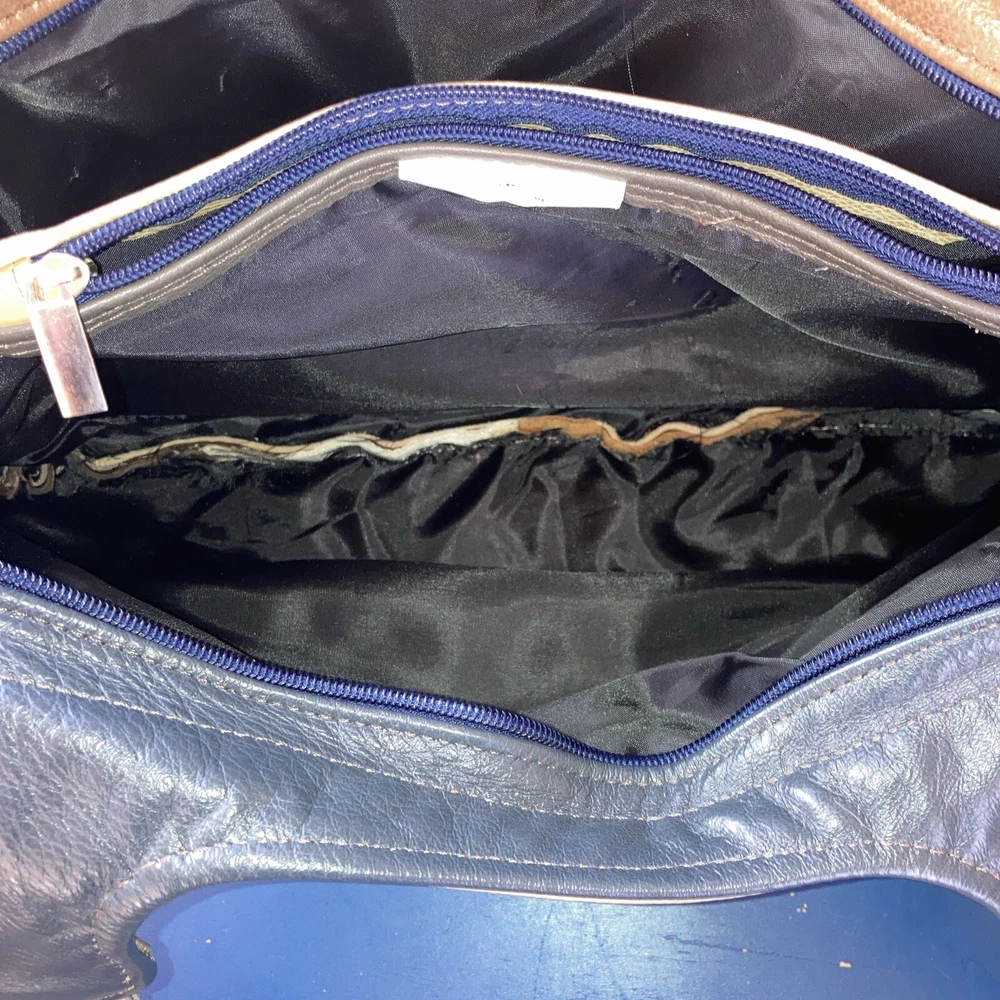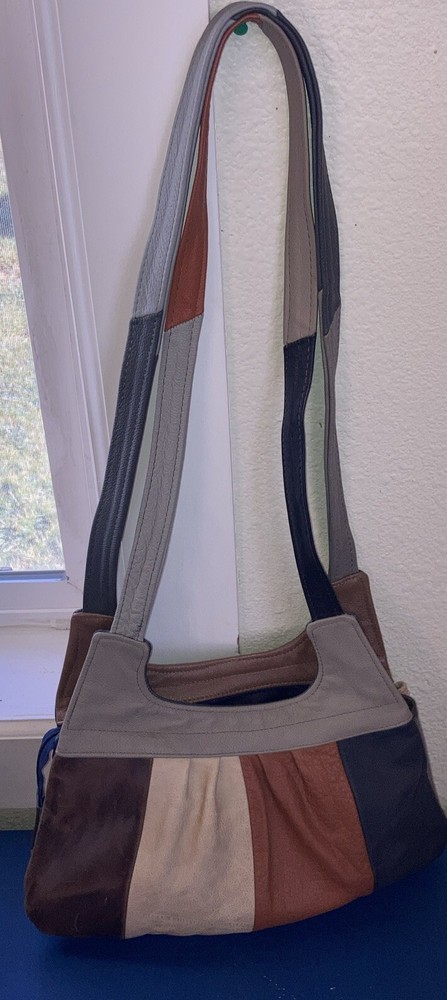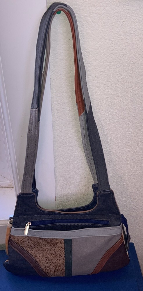 This beautiful shoulder bag is made of genuine leather in stunning shades of brown and gray. With five compartments, it provides ample space for all your essentials. It has never been used, making it a perfect addition to your collection. The exterior is crafted from high-quality leather. It's perfect for women who want a stylish and functional accessory that will last for years. Bag size 14.5 w x 9.5 H. Not including straps