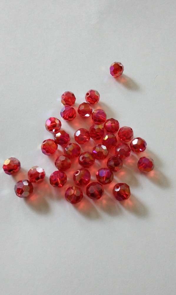 The product is a set of genuine Swarovski crystal loose beads in 2 colors, AB for extra sparkle. These 8mm round beads are faceted, made of crystal, and produced in Austria. Perfect for jewelry making and crafts. The quantities are 29 in green and 30 in the deep pink. Partial orders are welcome. Most never strung.