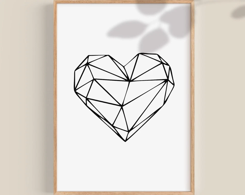 Geometric Heart Modern Art Minimalist Wall Art Heart Print Heart Minimal Bedroom Decor Heart Poster Gift For Her Material: Premium luster photo paper Print type: Inkjet printing One side printed + The finish provides the highest possible resolution and color saturation + Lasts up to 200 years in color and 400 years in black-and-white + Printed on high-quality resin-coated photo base paper medium + Posters can be hung with double-sided tape, tacks, or framed + Hand washing with a gentle cry cloth is recommended for extended durability I will hand select the best choice of paper for your chosen design to ensure top quality results for a beautiful, bright and luxurious print. All prints are sealed in cellophane slips for protection during transportation, and are shipped in a protective cardboard envelope.