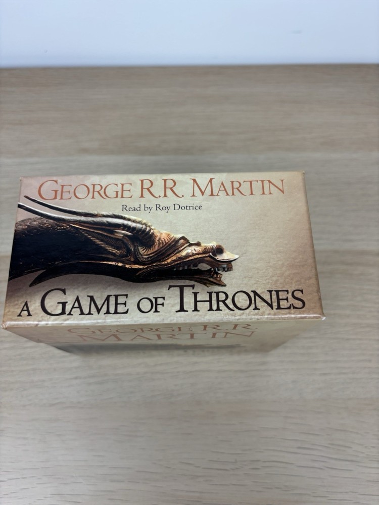 Publication Year:2015Topic:GamesPublisher:HarperCollinsgtin13:N/AISBN:N/APersonalised:NoAuthor:George R.R. MartinBook Title:A Game of ThronesGenre:FantasyFormat:Audio CDBook Series:A Song of Ice and FireNarrator:ROY DOTRICELanguage:EnglishSigned:NoNarrative Type:FictionCountry/Region of Manufacture:United KingdomType:Audiobook