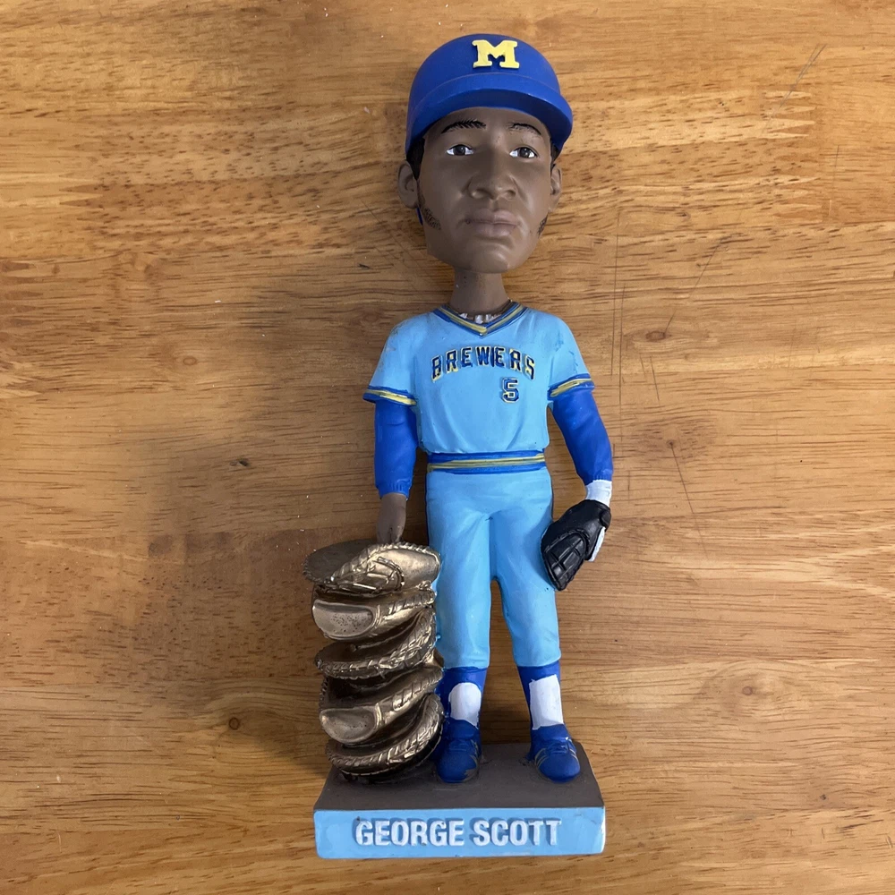 This George Scott Bobblehead is a must-have for any Milwaukee Brewers fan. Celebrate the 2013 Gold Glove Award with this officially licensed, unisex adult collectible. Standing at 7.5 inches tall, this blue figure is the perfect addition to any baseball-MLB fan's collection. Featuring the iconic Brewers player, this stadium giveaway is a great way to show off your team spirit during regular season games. The BDA brand ensures the quality of this product, making it a great gift for any fan. Add this bobblehead to your collection today!