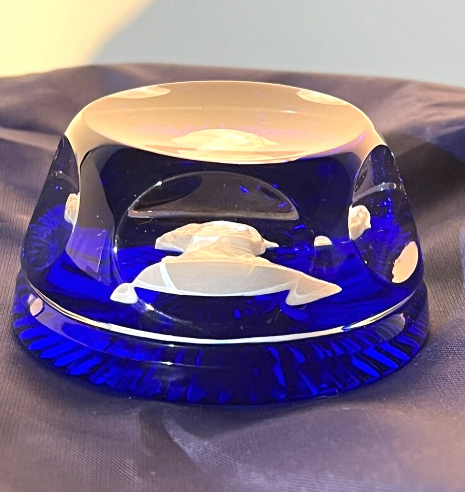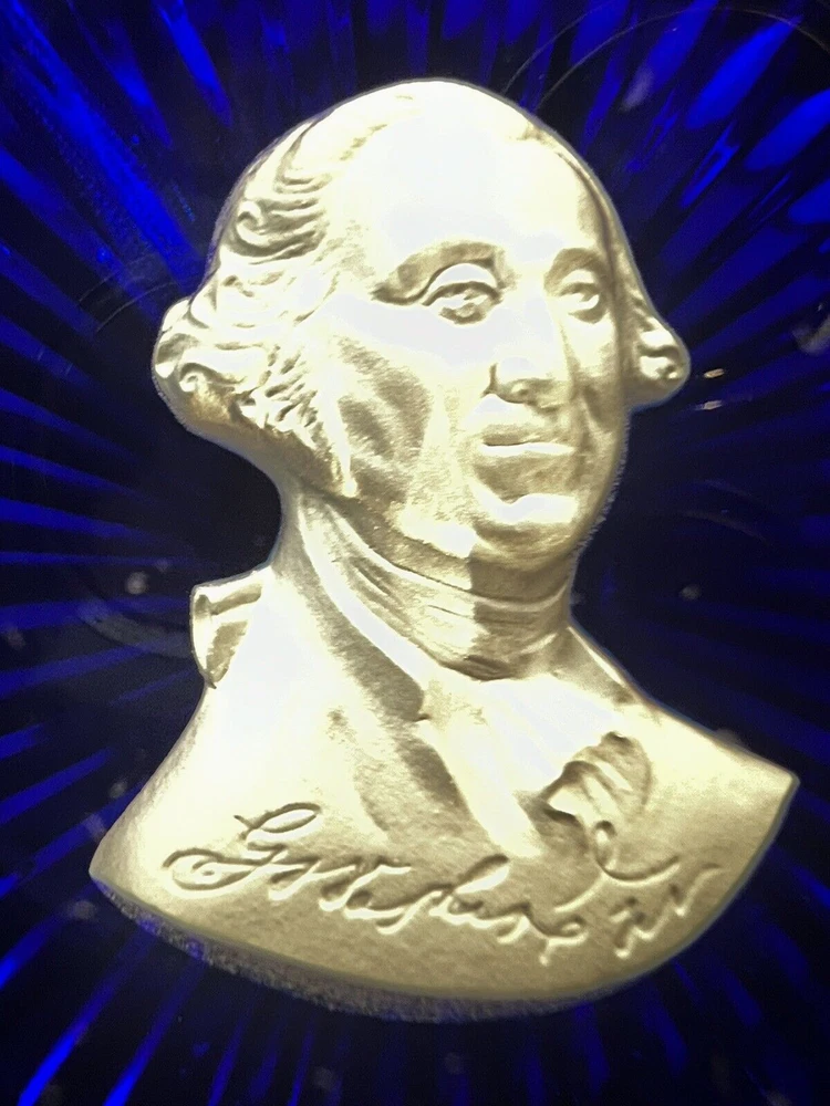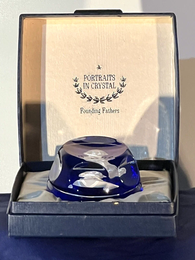 This exquisite paperweight features a stunning design by Crystal D'Albret/Danbury Mint . The multicolor crystal material is expertly crafted to create a unique and beautiful piece. Comes in original box. Part of Founding Fathers Collection. Made in France, this collectible item is a must-have for any decorative collection.