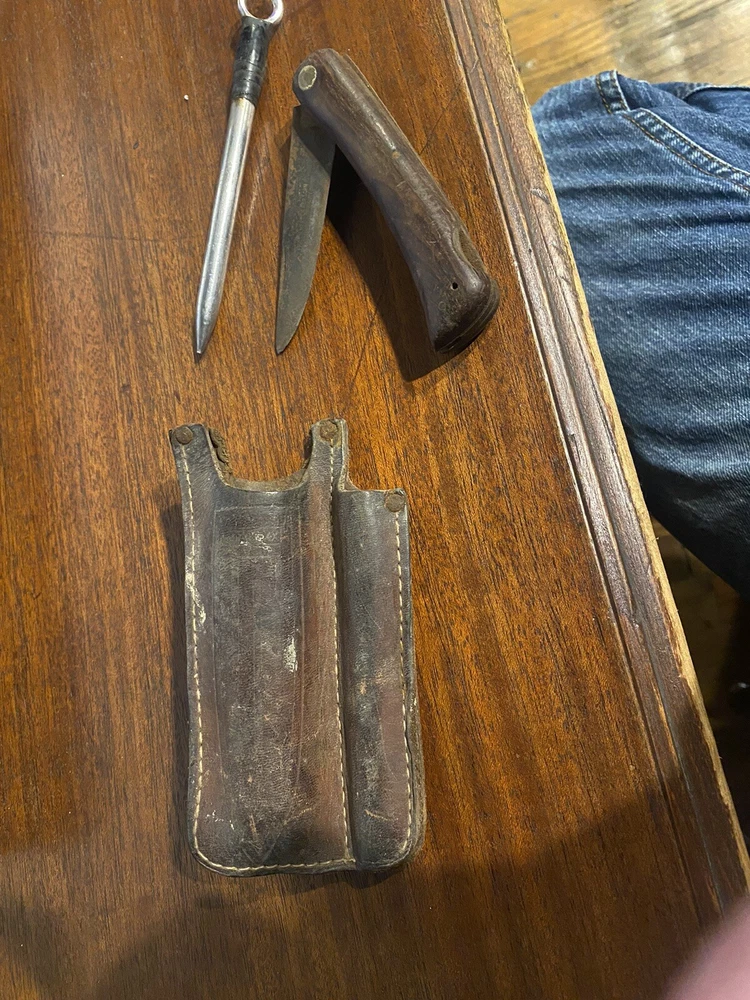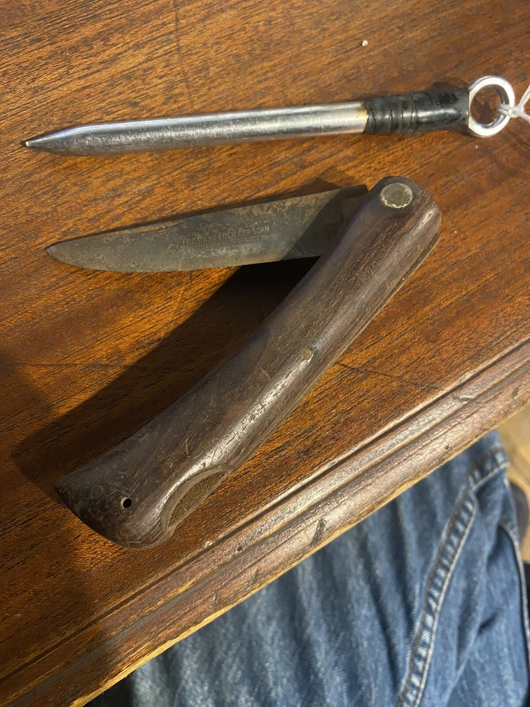 German Friedr Herder Abr Sohn Solingen Folding Pocket Knife Set With Holder