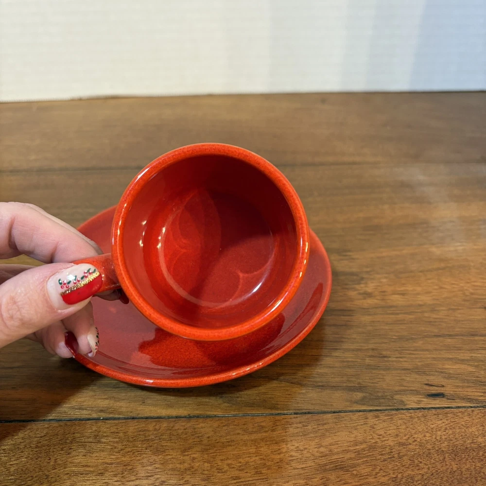 This vintage Waechtersbach Red Valentine Heart Coffee Cup and Saucer set from the 1980s features an embossed heart pattern, making it perfect for Valentine's Day. No chips or cracks. Experienced shipper of fragile items.