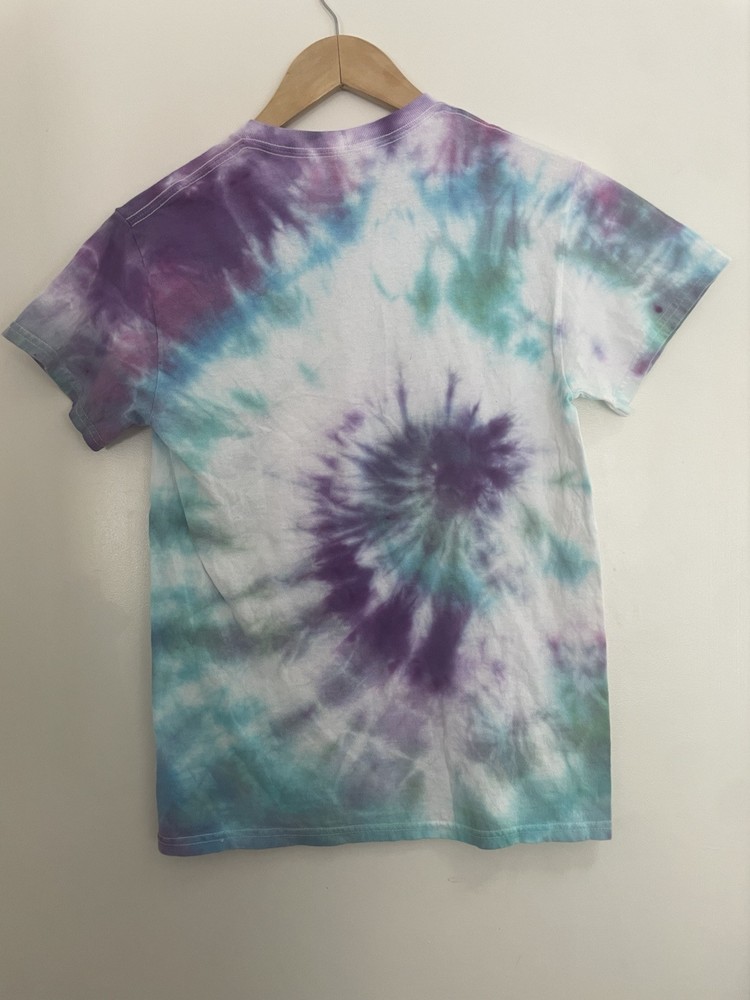 Gildan Adults Cool Tie Dye 100% Cotton Crewneck Short Sleeve Shirt Purple Blue S. Condition is pre-owned. Smoke free, pet free home. Shipped via USPS Ground Advantage. In very good condition. Free of rips or stains.