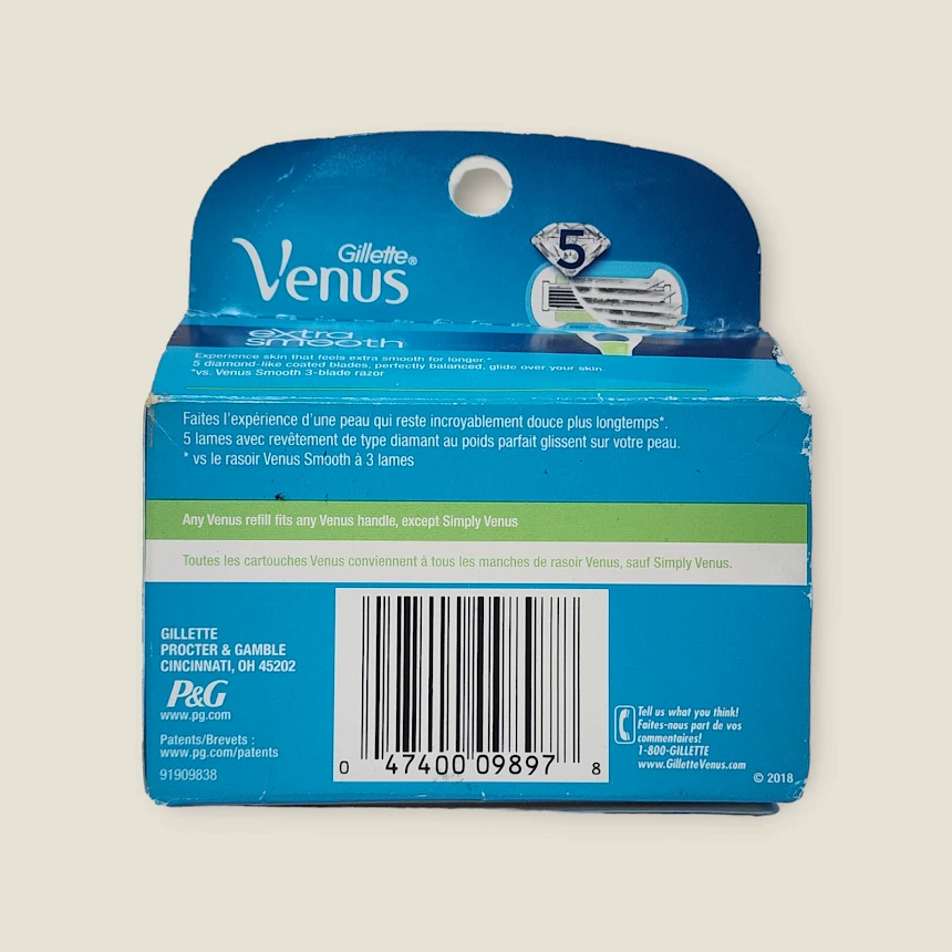 Product Overview: Achieve a close, smooth shave with the Gillette Venus Extra Smooth Razor Refill Cartridges. This 4-count pack of razor blade refills is designed to provide a comfortable and precise shaving experience. Featuring five diamond-like coated blades, these cartridges ensure a smooth glide and long-lasting results, making them perfect for daily grooming. Key Features: 5 Diamond-Like Coated Blades: For a close, long-lasting shave. Lubrastrip: Provides lubrication for a smooth glide and fades to indicate when it’s time to replace the blade. Pivoting Head: Adjusts to your curves, including ankles and knees, for a comfortable shave. Long-Lasting: Each blade refill lasts up to one month (based on twice/week shave). Universal Fit: Compatible with any Venus razor handle (excluding Simply Venus and Venus Pubic Hair Razor). What’s Included: 4 Gillette Venus Extra Smooth Razor Blade Refills Why Choose Gillette Venus Extra Smooth: The Gillette Venus Extra Smooth blades are engineered to provide a shave you can barely feel. The pivoting head adjusts to your curves, ensuring a smooth and comfortable shave every time. With up to one month of use per blade, this 4-count pack offers exceptional value and performance.