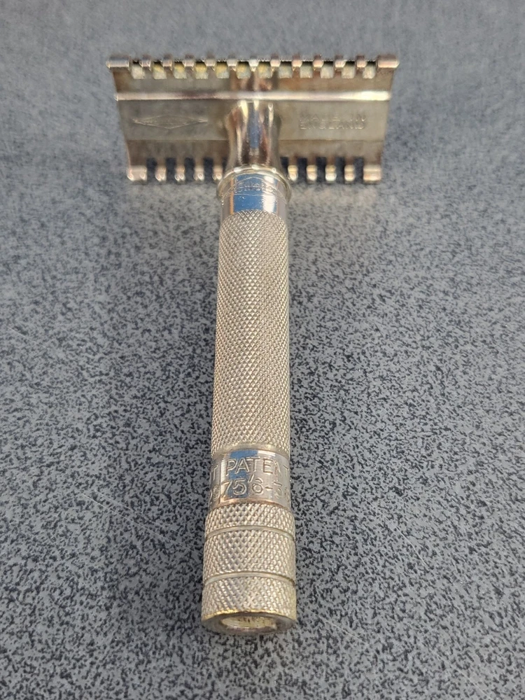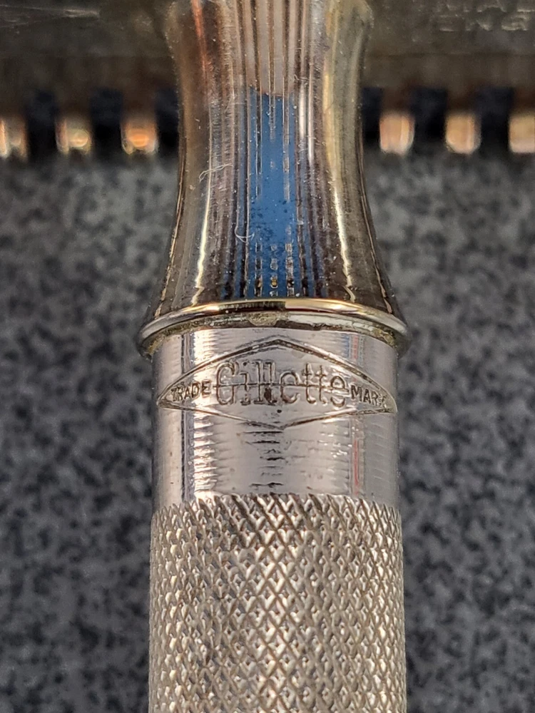 A much sought after antique Gillette RFB No.88 razor set. Manufactured in 1934 and in excellent condition, the razor has the Brit Pat nos 352975/6-363892 on the handle. Weighs 59gms and comes with 4 unopened Blue razor blades.