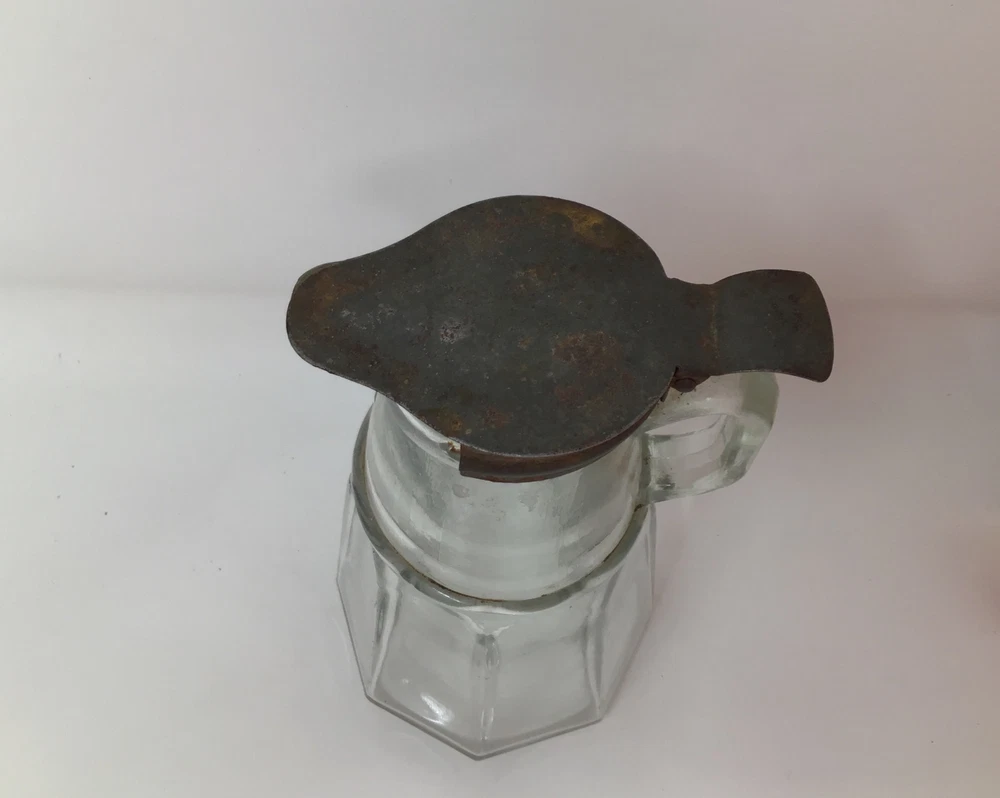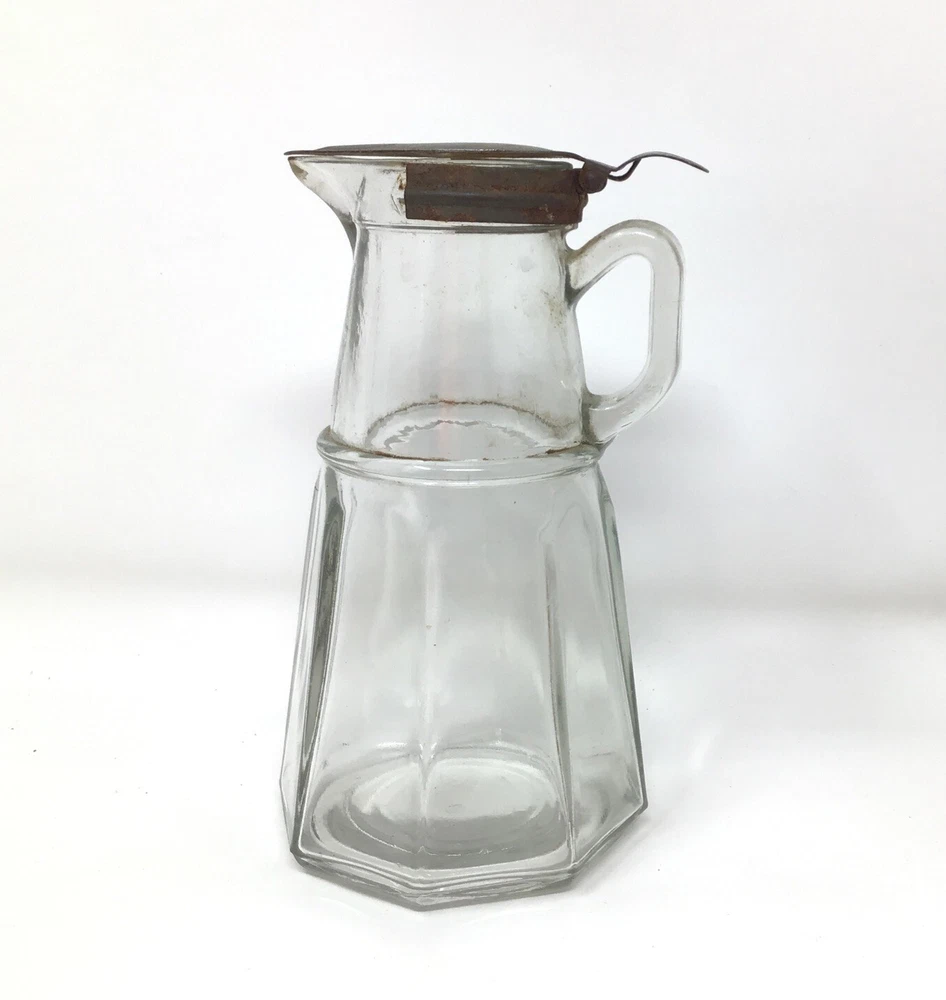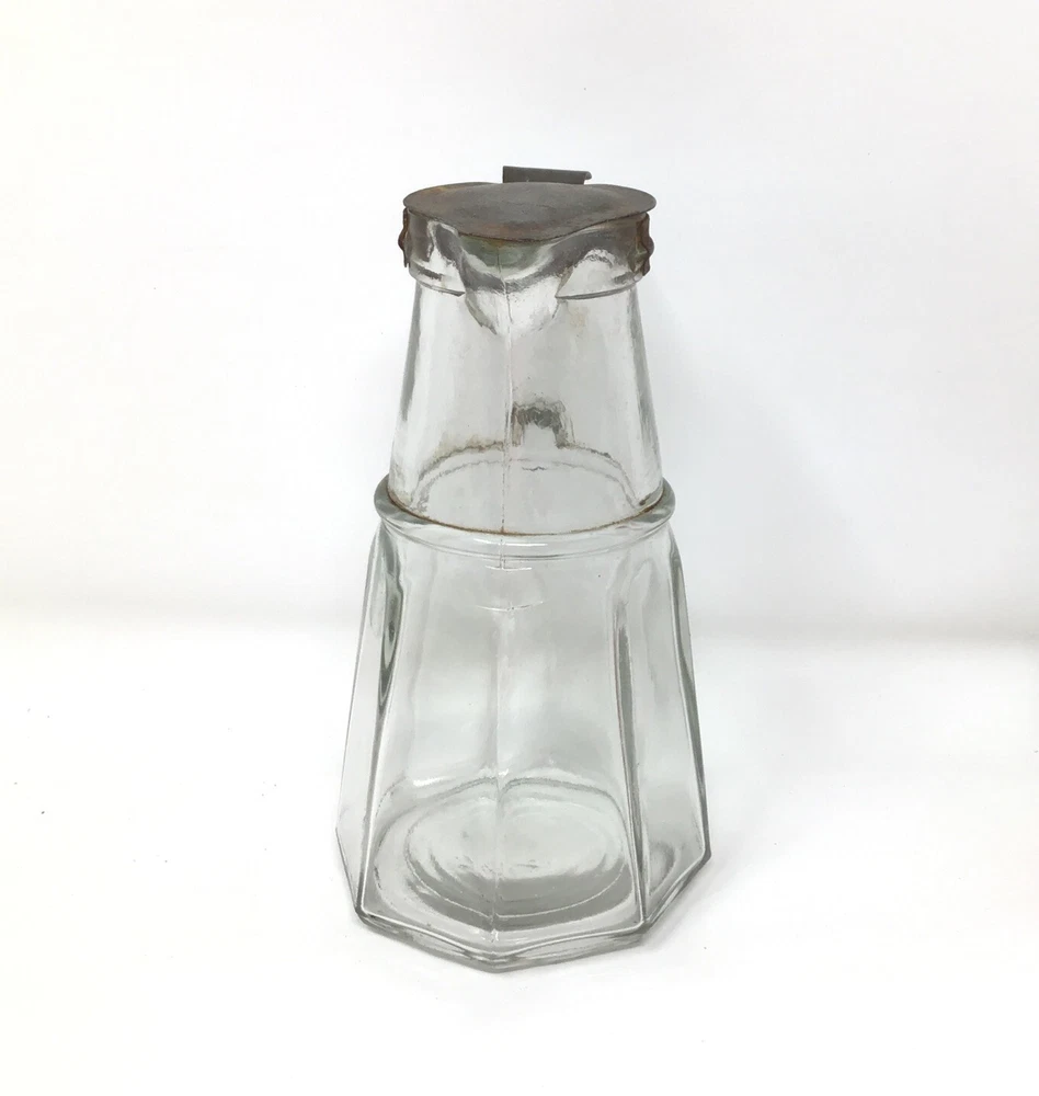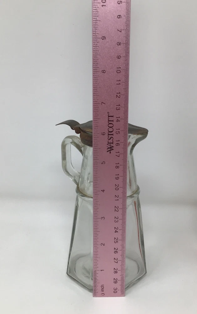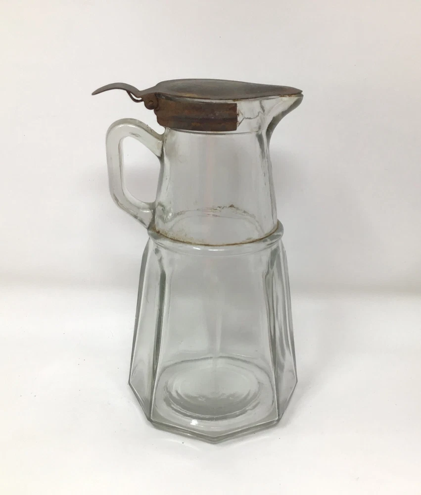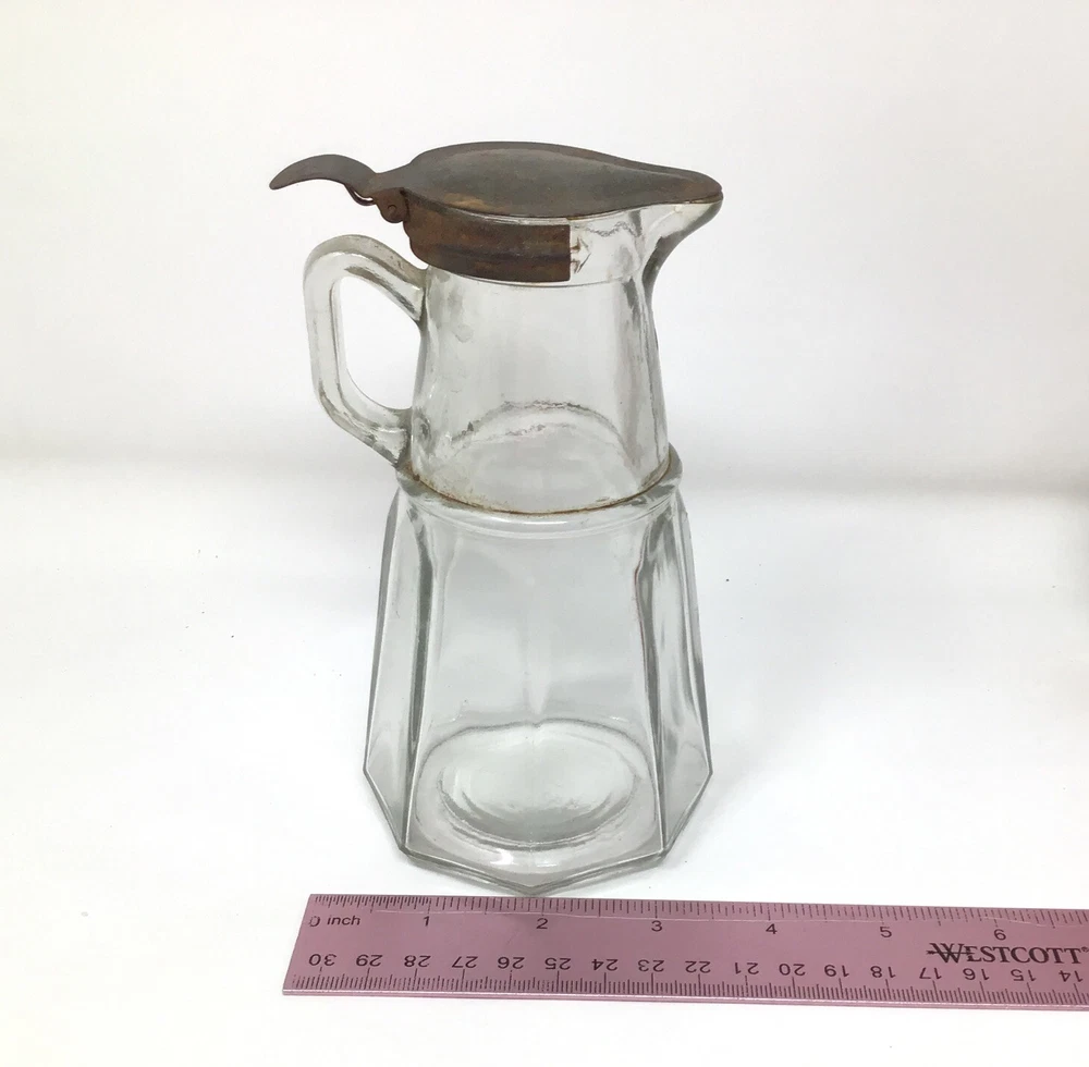 Antique Syrup Dispenser Pitcher Whiskey Noggin Decanter 6” Tall Glass Metal Lid. The lid is a little rusty, the ja4 is in spectacular condition. Please look at the pictures they tell the best story regarding condition and include measurements. We are happy to combine shipping. Please be sure to check out our other listings at Fantastical Thrifts. You never know what fantastical new thrifts await! Shipped via USPS Ground Advantage. Happy shopping, and thanks so much for looking!