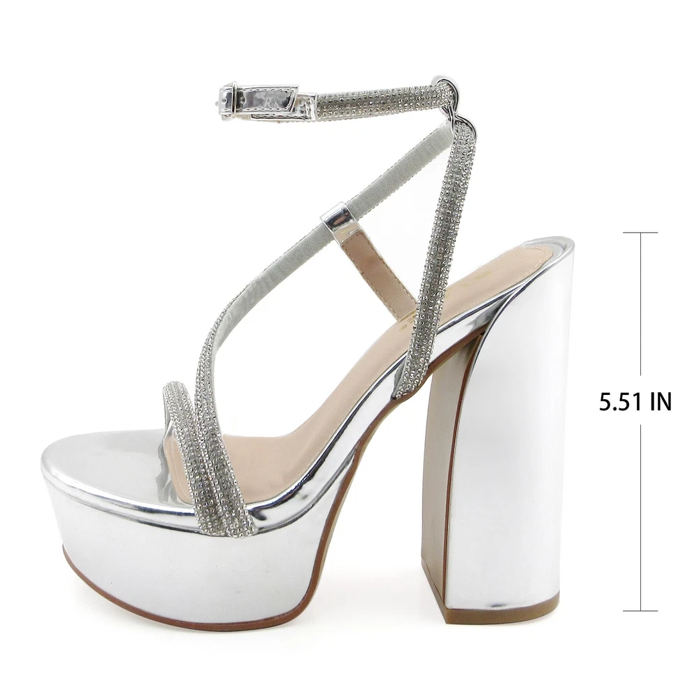 Description: These Glaze platform sandals for women feature a 5.5-inch block heel with crystal rhinestone straps. The sandals have a solid pattern with a buckle closure and are suitable for various occasions such as parties, casual outings, and formal events. They have a strappy style with PVC lining, rubber outsole, and are made of polyurethane with PVC insoles. Payment Information: We Accept PayPal We Accept Credit Card via PayPal Shipping Information: We provide Same Day FREE SHIPPING domestically within the U.S.A USPS Priority (2-3 business days) & USPS Priority International (14 days with tracking) We reserve the right to charge additional shipping fee for reship items due to wrong shipping address provided during checkout. All orders before 5PM EST will ship out same day!, Monday - Friday Ships Same Day with TRACKING! Refund & Return Policy: We offer a 30 day return policy on all items purchased from us. Please contact us within 30 days after receipt of the item for a return. Do not ship the item back to us without contacting us first. Return shipping is responsibility of buyer. These Glaze platform sandals for women feature a 5.5-inch block heel with crystal rhinestone straps. The sandals have a solid pattern with a buckle closure and are suitable for various occasions such as parties, casual outings, and formal events. They have a strappy style with PVC lining, rubber outsole, and are made of polyurethane with PVC insoles.
