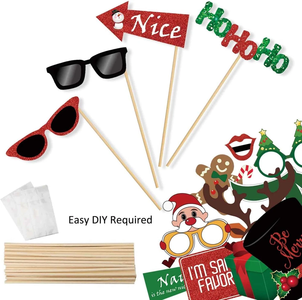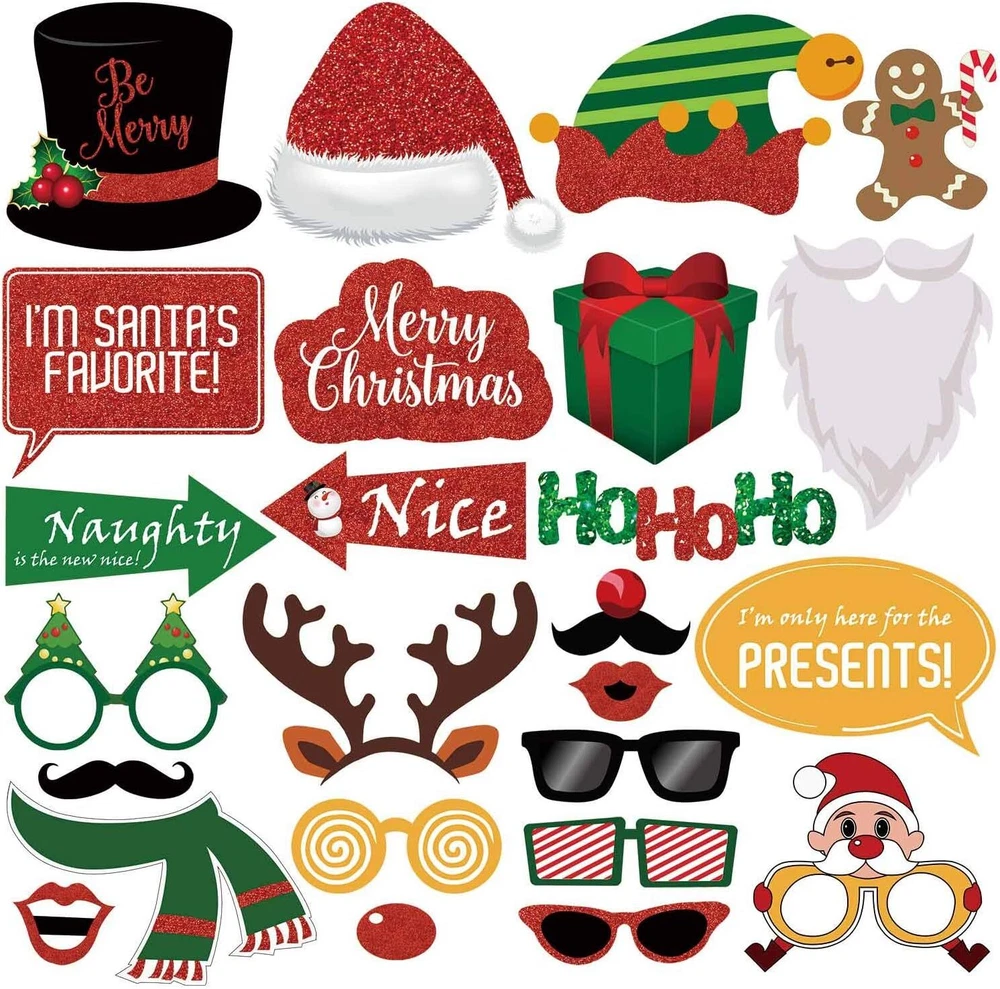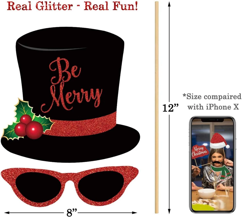 Glitter Christmas Photo Booth Props Kit - 25 Count Large Product Details Color: Christmas Occasion: New Year, Christmas, Birthday Theme: Christmas Brand: Jokmae Item Weight: 0.57 Pounds Number of Pieces: 25 Manufacturer: Jokmae Package Dimensions: 12.2 x 9.45 x 0.75 inches Item Weight: 9.1 ounces Department: unisex-adult Item model number: yj420y180814xprop Is Discontinued By Manufacturer: No Large Size - 25 various design photo props in large size, great for both adults and kids. Real Glitter - Not fake printed! Decorated with real xmas red glitters, bling and shining! Super Quality -Heavy duty cardstock, long strong wooden stickers, reusable for years. DIY Required - Easy assemble needed by yourself with the stickers and glue dots offered. Unique Design. Looking for some unique props for Christmas photo taking to leave some unforgettable memories? This Red Glitter Christmas Photo Booth Props set from Jokmae will provide you an easy solution! Complete with stick handles, these party props are easy to hold and pose with. Set up a selfie spot at your bash, or create a festive backdrop for an official party photo booth. Pop these handheld picture props into a tall jar or vase for easy selection, or incorporate them into a festive tablescape decoration. ♥ CHRISTMAS PHOTO PROPS 25 fun props in a variety of shapes and sizes Professionally printed & cut Made of sturdy card stock paper Includes plenty of wooden dowels & adhesives Perfect for selfies and group shots during your party ♥ WHAT’S IN THE PACKAGE? 25 cardboard photo props 25 wooden stickers, 11.8 inches Plenty of beads glue ♥ WARM TIPS You need to attach the photo props to the sticks by yourself. DIY with your family and friends. That would be lots of fun! You can use scotch tapes to cover the glue dots on the bamboo sticks, to avoid the glue dots sticking to other things.