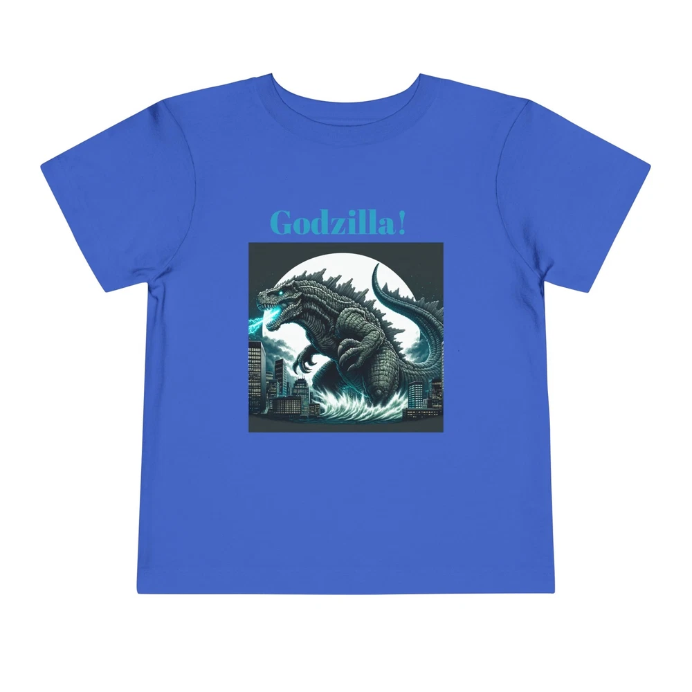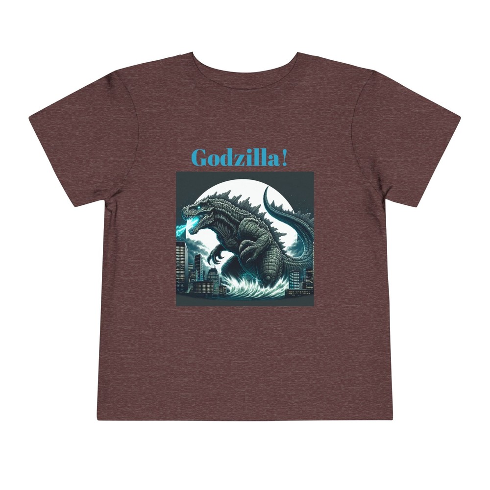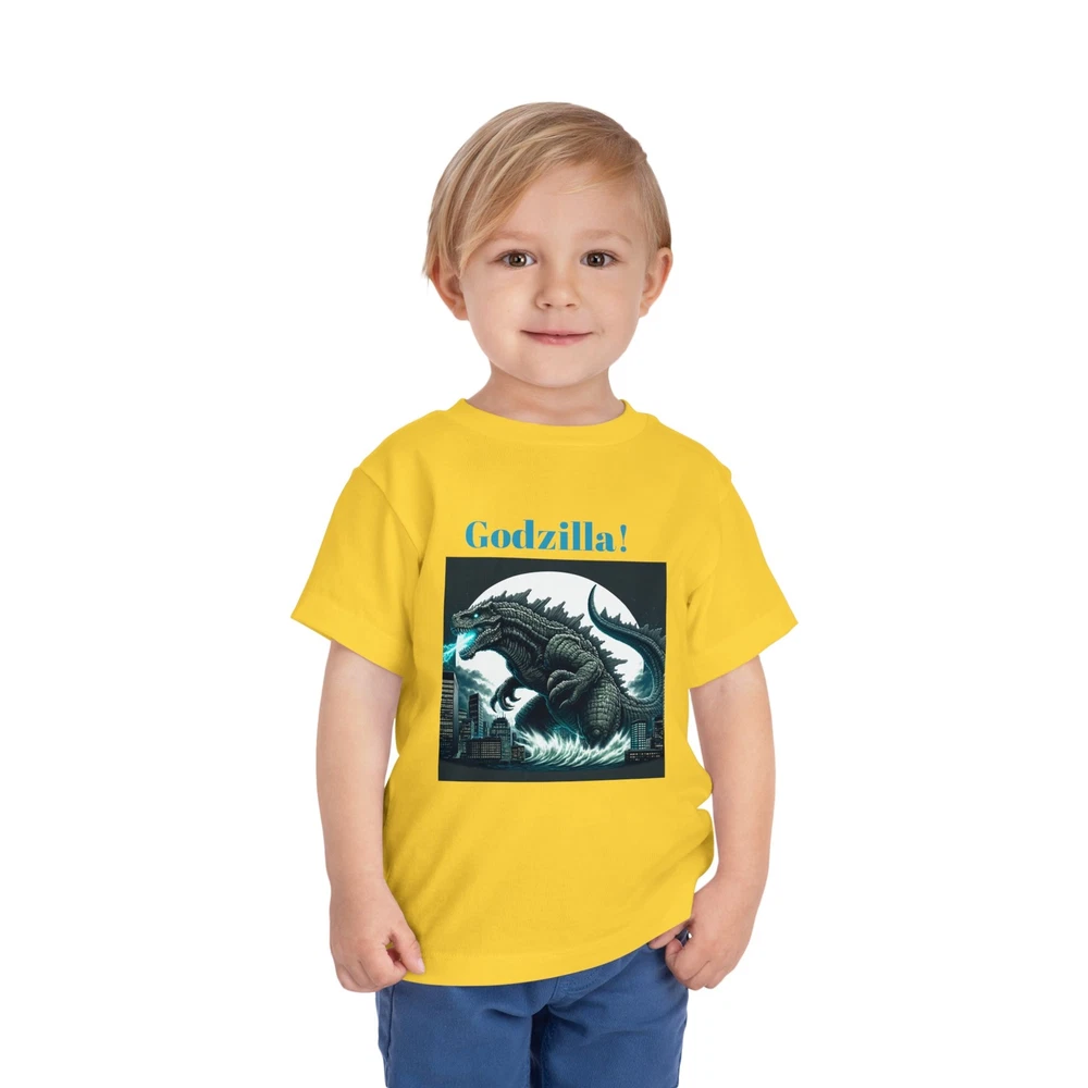 This Toddler Short Sleeve Tee brings a playful yet bold vibe that’s perfect for your little ones. Designed for comfort and style, this tee features a striking Godzilla graphic that is sure to excite fans of all ages. The light fabric makes it ideal for everyday adventures, from playdates to family outings. Perfect for birthdays or special occasions, this tee is a great gift for young monster movie enthusiasts. Celebrate holidays like Halloween or other themed events with a fun addition to their wardrobe, allowing them to express their passion for classic cinema while staying cool and comfortable. This tee is relevant for toddlers who love to express their interests in a vibrant way! Product features - Side seams enhance the structure and shape of the tee. - Made from various fiber compositions for different colors, including 100% cotton options. - Crafted from 100% airlume combed and ring-spun cotton for a soft touch. - Lightweight fabric makes it comfortable for all-day wear. - Features a convenient tear-away label for added comfort. Care instructions - Machine wash: cold (max 30C or 90F) - Do not bleach - Tumble dry: low heat - Iron, steam or dry: low heat - Do not dry clean