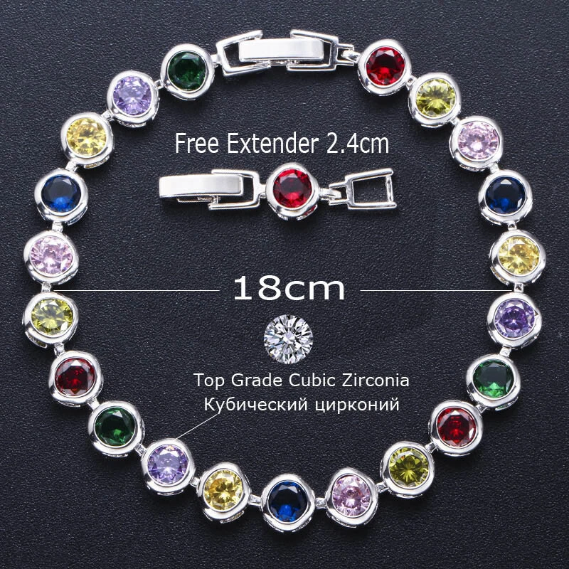 Gold Plated CZ Multicolored Women Round Tennis Bracelet Wristband Chain Jewelry Specifications: 1. Condition: New 2. Material : Cubic Zirconia 3. Bracelet Length :18 cm + 2.4 cm extended clasp Features: 1. Cubic Zirconia High Quality Material - Diamond-like Brilliance , Prong Setting and CZ Stone are stable. 2. It will be an Ideal Gift for Your Girlfriend, Wife, Fiancee, Daughter, Mother, Your Special Someone, or just Yourself. 3. Wearing Occasion: Daily wear, Shopping , Anniversary , Party , Wedding , Christmas , New Year , Valentine's Day ,etc. Package Includes: 1Pc Bracelet Payment Delivery details Terms of sales About us Contact us Payment 1. We only accept payment by Paypal 2. We request you pay within 5 days of the first auction close. Failure to do so may cause our automated dispute system to file disputes for unpaid items Delivery details We only send items to the registered eBay address.Items will be shipped within 2 business days from the date payment is received (not include public holiday and weekend) . As per eBay regulations, import duties, taxes, and customs charges are the buyer's responsibility. Please check with your country's customs office to determine what these additional costs may be prior to bidding or buying. Terms of sales After-Sale Please contact us to request a return/replace/refund authorization.It will be best if you use ebay message to contact me. 1, Return and replacement request is available only the requests within 30 days after parcel received. 2, Returning the item as the same condition as received. Situation and solution Defectives ---Please contact us and provide a photo of the defective part. After situation confirmed,we will offer you refund/return/replacement according to the situation Not as Described ---Please contact us and provide a photo of the wrong part. After situation confirmed,we will offer you refund/return/replacement according to the situation Not Received ---Please undersatnding shipping on the way was out of our control ,because of the busy shipping season,holidays,bad weather or force majeure etc. It may be delay for days. But if it took too much time and not deliveried, Please message me, I will offer you solution for it. About us Working time: Chinese time(Eastern eight zones):Monday to Friday ,9:00 am to 6:00 pm. We do not work on chinese legal holiday. Message reply: We will reply all messages within 24 hours of business time. Contact us Please contact us via ebay message, it was the best way for both you and us to solve problems. Any questions or anything you need, please feel free to contact us.