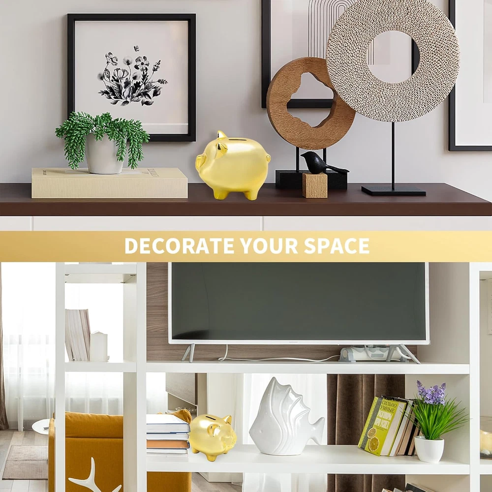 Store New Arrivals Add to Favorite View Feedback Contact Golden Piggy Bank Decor with Non-Slip Pad,Ceramic Decorative Coin Piggy Bank,Money Box for Cash Gift,Coin Bank,Tip Jar,Piggy Bank for Kids,Bookshelf Decorative Objects for Bedroom,Table Top Decor Description Item Weight 1.1 pounds Product Dimensions 5.31 x 5.31 x 4.52 inches 【multipurpose use】:The lovely golden piggy bank is also a perfect ornament.Medium size, no matter where you put it is a dazzling presence 【Great Gift For All Ages】:This piggy bank is a nice gift for kids with savings goals. Coin savings bank, also a great addition for adults to manage change and away from the coin mess. A lovely way to save your baby's coins. Easy Coin Bank for Kids - This well designed piggy bank has a built-in plastic knob at the bottom, easy for kids to keep the money safe or take the money out." 【Great Home Decor】:This piggy bank is 4.52 x 5.31 x 4.52 inches in size,very suitable for dressing table, bedside table, TV cabinet, bookshelf, coffee table, desk, display rack or end table, eye-catching decorations for office or shop,Whether you put it on your desk or shelf, it can make people shine. 【High Quality Ceramic】:Ceramic piggy bank body electroplated gold, smooth like mirror, will shine in the light 【Best Gifts】:It is both interesting and educational. Perfect gift choice for your mother, son,daughter or any special person you can think of. Wonderful children’s gift, baby gift, new mom gift, expecting mom gift or addition to your own baby shower gift registry. No Need to Break Easy to use Best Coin Bank for Kids Adults Boys Girls as Gift on Christmas,Birthday,New Year's Day.Come and buy one There will be an opening just above the back of the piggy bank for you to put in different coins. The area of the opening allows you to easily put in different coins without jamming. ABOUT US We offer the best prices around on high quality products. Our E-store includes media such as books, movies, music and games while offering electronics, toys, sporting apparel, clothing, tools, general home, garden items and more. SHIPPING We are always working hard to ensure your package arrives as soon as possible. Please understand that some factors like weather, high postal traffic, and the performance of shipping companies are outside of our control. We offer free shipping to the lower 48 states and ship within 2 business days of payment, usually sooner. We do not accept P.O. Boxes. Please provide a physical address. For shipping outside of the continental USA, we only use eBay's Global Shipping Program.The item is shipped to KY and then sent to the rest of the world. International customers are responsible for all duties and taxes. Continue to check out in order to calculate costs for shipping the item to your country. Messages regarding eBay's Global Shipping Program MUST be directed at eBay EXCLUSIVELY. RETURNS We offer a 30-Day Return Policy on items which you are not completely satisfied with. You have the option for a full-refund or an exchange of the item. No returns are available on items shipped outside of the USA. PAYMENT We accept PayPal. CONTACT US This page content is yet to come Please ad us to your favorite seller and visit again later Thank You CUSTOMER SATISFACTION We try our very best to make sure every customer is completely satisfied. If there's a problem, message us! We're happy to help. WE ACCEPT Copyright © 2021 AutoDS. | All Rights Reserved