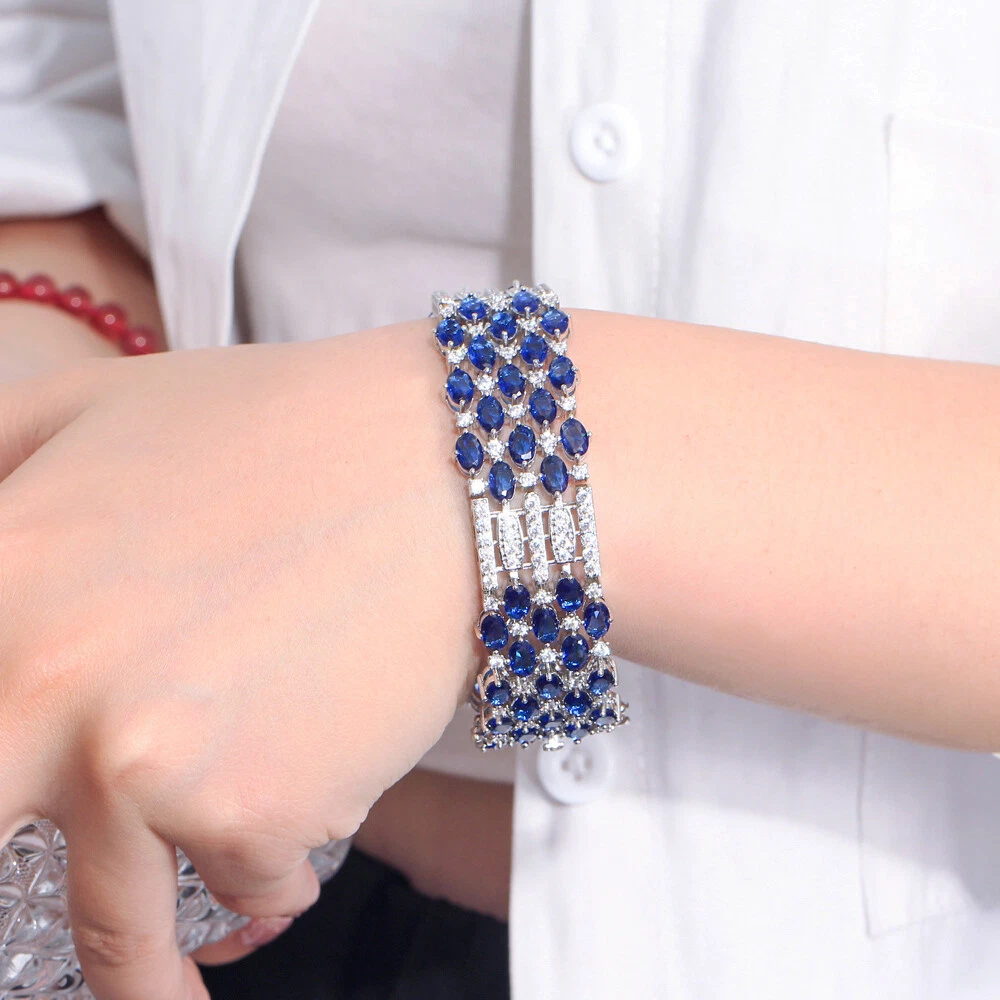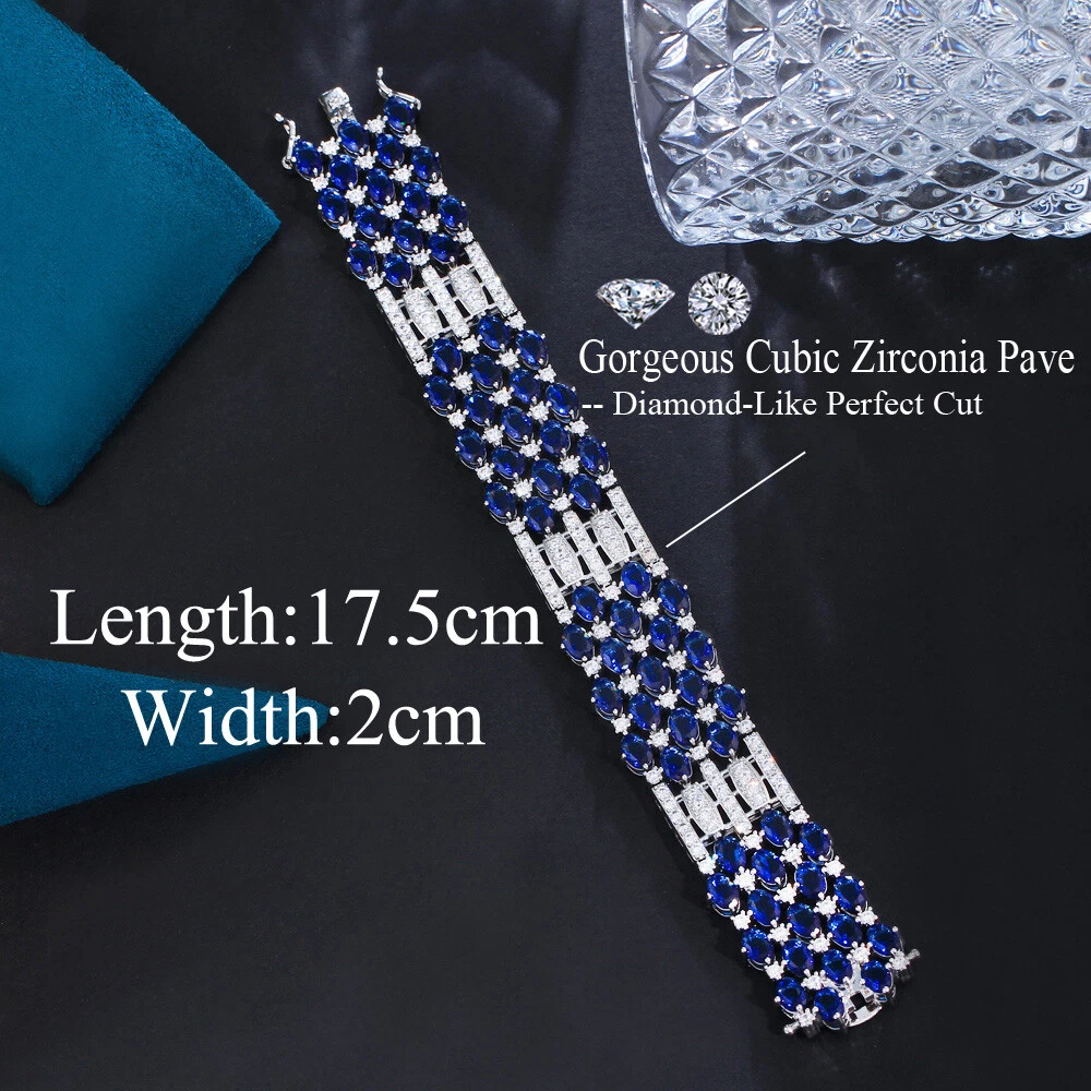 Gorgeous Blue Cubic Zirconia Silver Plated Wedding Big Wide Bracelet Women Party There’s an old saying that: Jewelry is woman’s best friend. And one appropriate luxury jewelry helps to spice up your charm and beauty. And here’s the reason why you choose us: ★ We adopts high-grade Cubic Zirconia, which displays pure and fascinating color; ★ All our items are Elaborate, Gold Plated (white gold plated/yellow gold plated/black gold plated), by which the texture is smooth and with fancy look, and will be appropriate for so many occasions; ★ Our items are with Exquisite Design, which shows your excellent taste, and could catch people’s attention easily. ★ Ideal gift for mother, wife, girlfriend, daughters, brides, bridesmaids, ect. Specification Type: Bangle & Bracelet Stone Material: Cubic Zirconia Base Metal Material: Brass Metal Material: Silver Plated Shape: Wide Bracelet Color: Blue Suitable Occasion: Daily, Holidays, Party, Engagement, Wedding, Anniversary, Valentine’s Day, Carnival, Performance, ect. Package Includes 1 Piece of CZ Bracelet Please note: *Please bear in mind that there might be 1~2cm difference due to manual measurement. *Our digital images are as accurate as possible. However, different monitors may cause colors to vary slightly. *We offer after-sale service, if there is any item problem, please feel free to contact us via eBay message first, your kind understanding is much appreciated. About Us Payment Shipping Returns Contact us About Us Topjewel33 is a newly-established online store which dedicates to provide excellent luxury jewelry products, such as earrings, rings, necklaces, bracelets, brooches, hair accessories, and high grade jewelry sets. We target worldwide market, and we strive for offering you unbeatable low price and satisfied customer service. Payment We accept PayPal payment only. Payment must be received within 7 days from the date of purchase. Shipping We do hope all our customers could receive the order asap, so normally, the order will be sent out within 2 working days. And as the delivery is handled by the third party, sorry that we could not guarantee which date you could receive the package. And sometimes the delivery might be a little bit delay, especially in high volume or holiday seasons. However, please don’t worry and feel free to contact us via eBay message, and we will do our best to help. And we sincerely apologize for any inconvenience may cause. Sometimes custom tax might be required, and we are afraid that it will be covered by the buyers, thank you for kind understanding. Returns We provide 30 days money back return policy. And if you have any problem with the item, please make sure the item is in the original package and feel free to contact us via eBay message first, thank you for kind understanding and cooperation. Contact us We offer customer service, if you have any problem with the item before/during/after the purchase, please feel free to contact us via eBay message, and we will get back to you asap. Thank you for your kind patience.