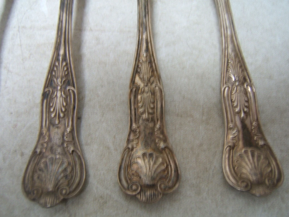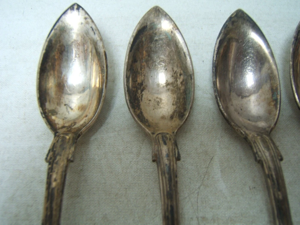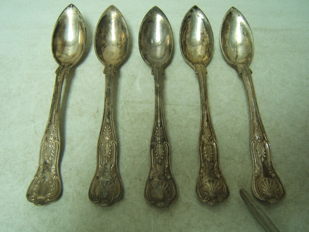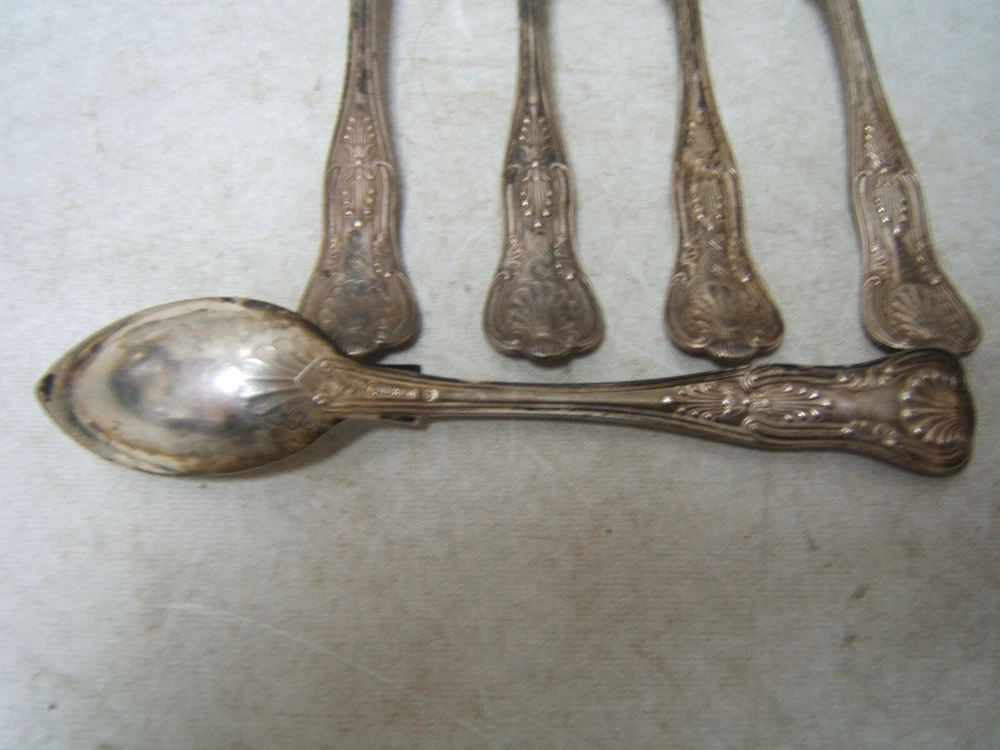 Gorham Kings Silverplate Fruit / Orange Spoons Set of 5 5 3/4" Long Gorham Kings Silverplate Fruit / Orange Spoons Set of 5 5 3/4" Long Click images to enlarge Description ? Gorham Kings Silverplate Very faintly monogrammed AGM. Fruit/Orange Spoons Set of 5 5 3/4" Long. Good condition but tarnished. Storeroom 1, D, Shelf 3 Check our other listings for more in this pattern. We happily combine shipping. Condition: Used Payment Paypal Shipping Domestic shipping: Weight based Shipping Charges. Domestic Carriers are: Usps Ground Advantage I will ship to: United States Weight: 15 oz. Shipping and Handling: Please check eBay's Shipping & Payment tab Thank you for visiting the Juniata General Store. We are located in the heart of Central Pennsylvania just up the road from the beautiful Juniata River. We offer a wide variety of merchandise, both new and vintage. Most of our inventory is one of a kind items and we add new items constantly so check back often. Vendio Images: More than just a pretty image. 250+ Mobile Responsive & Active Content Free Listing Templates with Vendio Sales Manager. Vendio provides powerful selling automation for sellers of all sizes. Get business information that counts! - Vendio Counters are active content free.