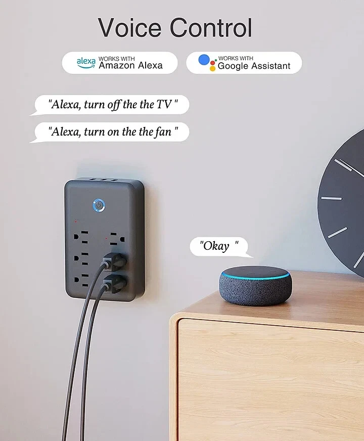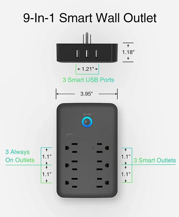 Works with Alexa Google Home,App Remote Control & Timer Function,Voice Control, 3 Smart Plugs (up to 15A)+ 3 Smart USB Ports(5V/3A), +3 Always-On Plug (up to 15A)