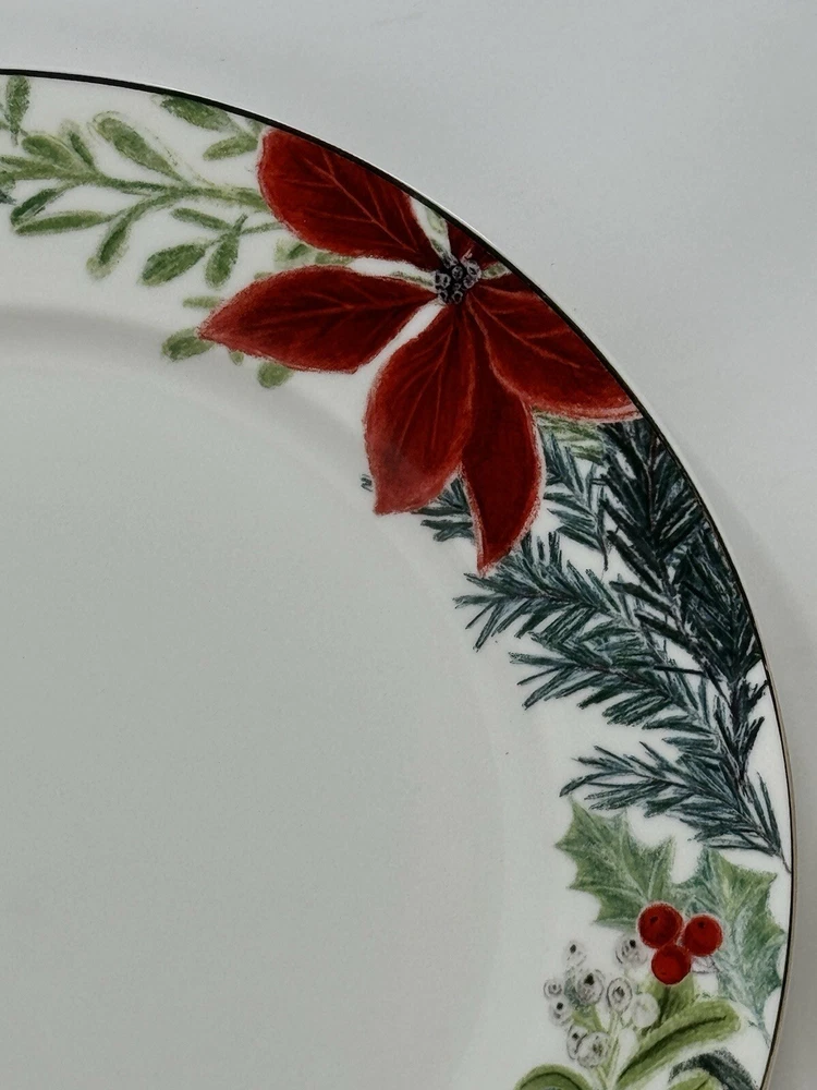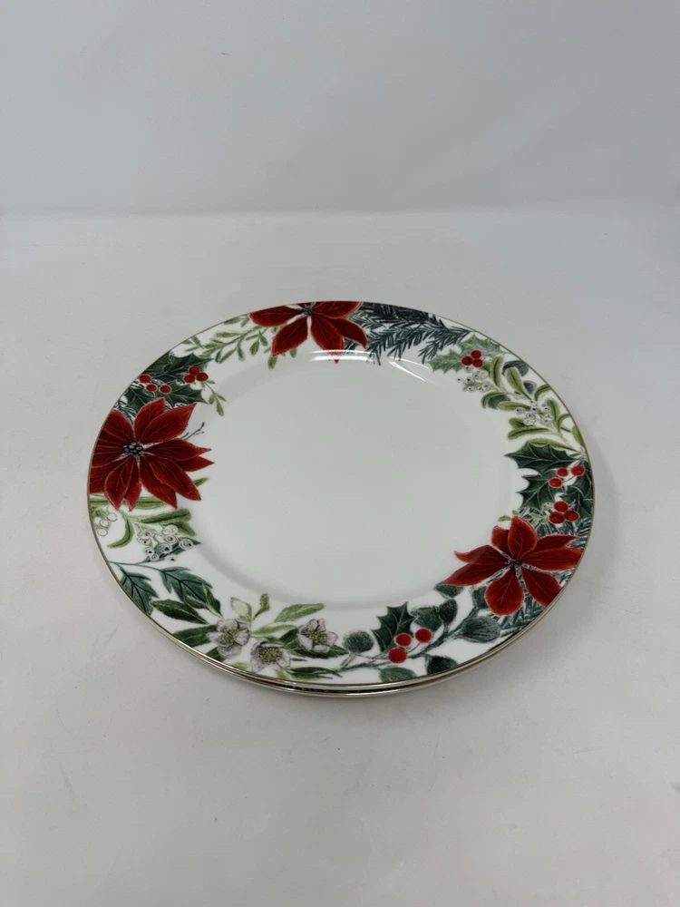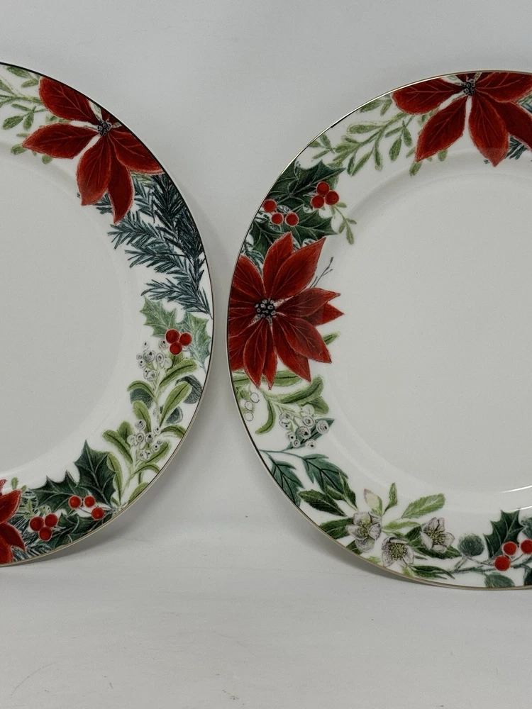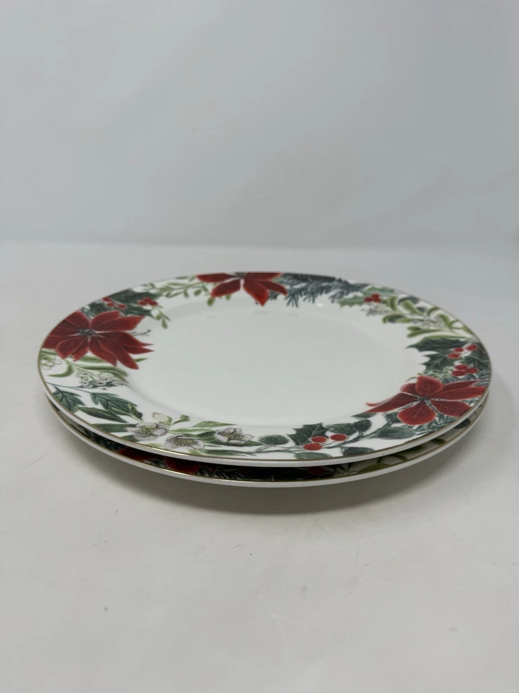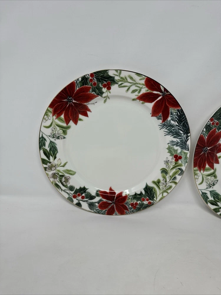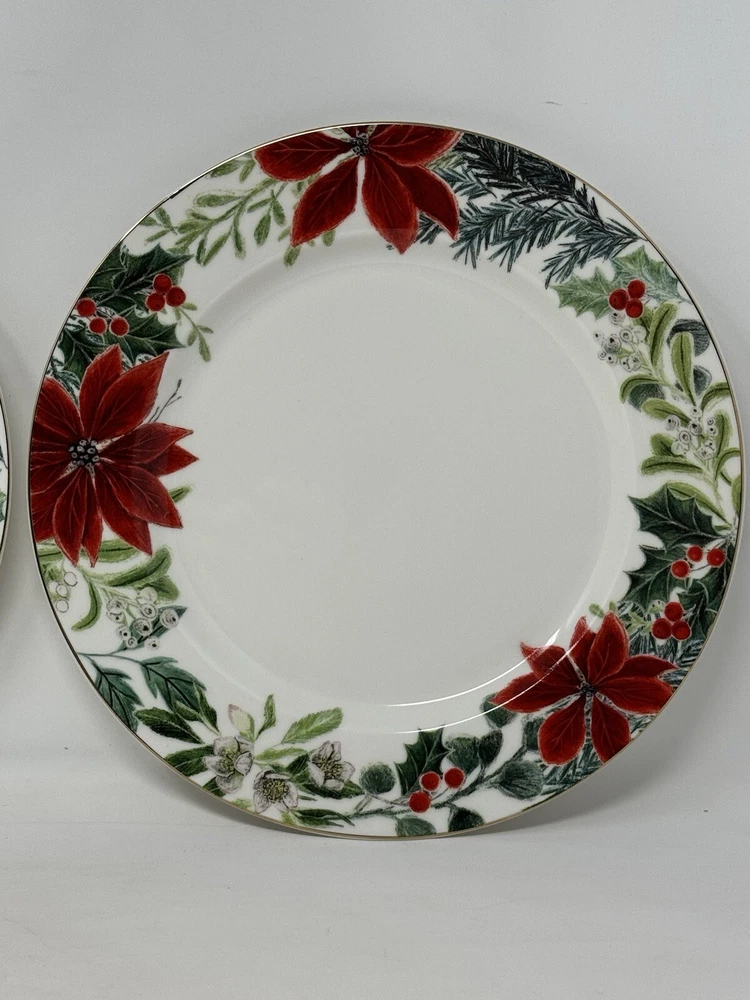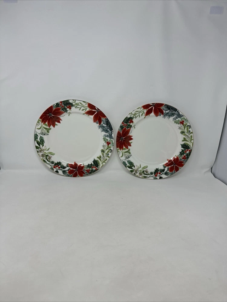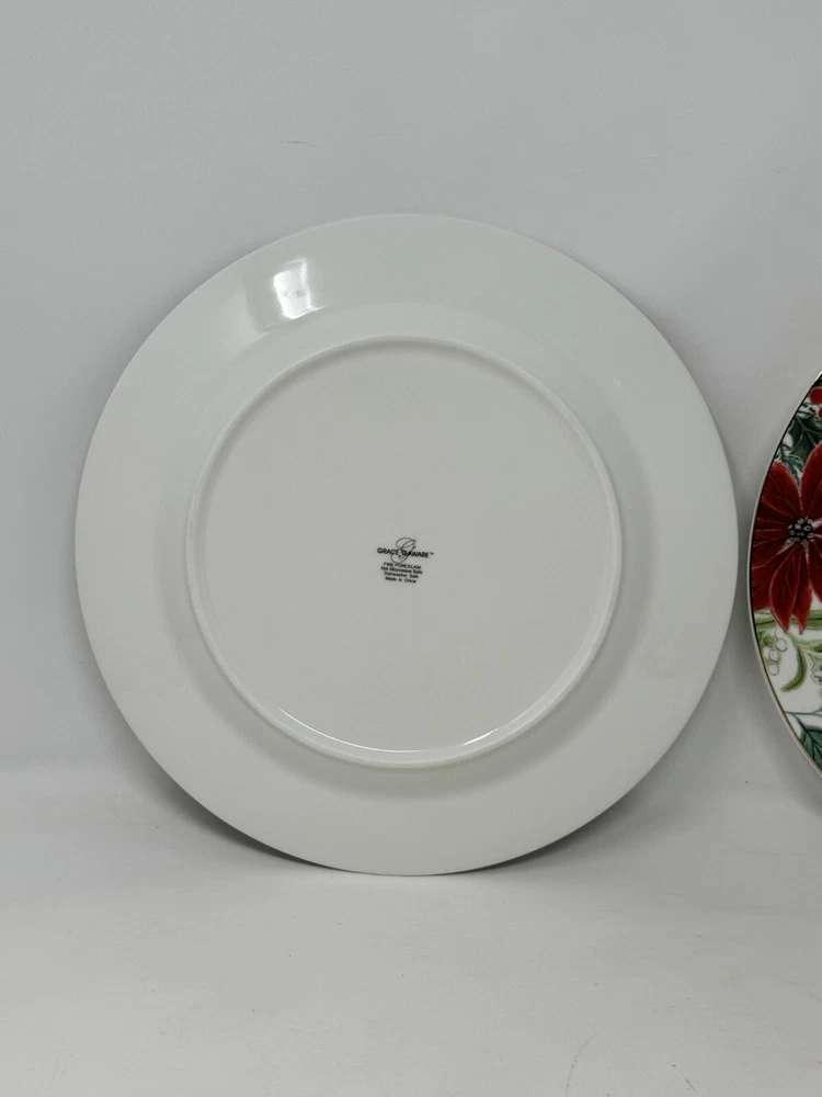Add a festive touch to your dining table with this set of two Grace Teaware Christmas Poinsettia dinner plates. These round plates feature a beautiful floral pattern with holly berries, poinsettia, and a shiny finish. The plates are made of high-quality porcelain and are dishwasher safe for easy cleaning. Measuring 10.5 inches in length and width, these plates are perfect for serving your favorite holiday dishes to your loved ones. Whether you're hosting a Christmas dinner party or simply enjoying a meal at home, these plates are sure to impress. Don't miss out on this original and hard-to-find set. brand new release for 2024! wow they are beautiful! perfect for the best season!